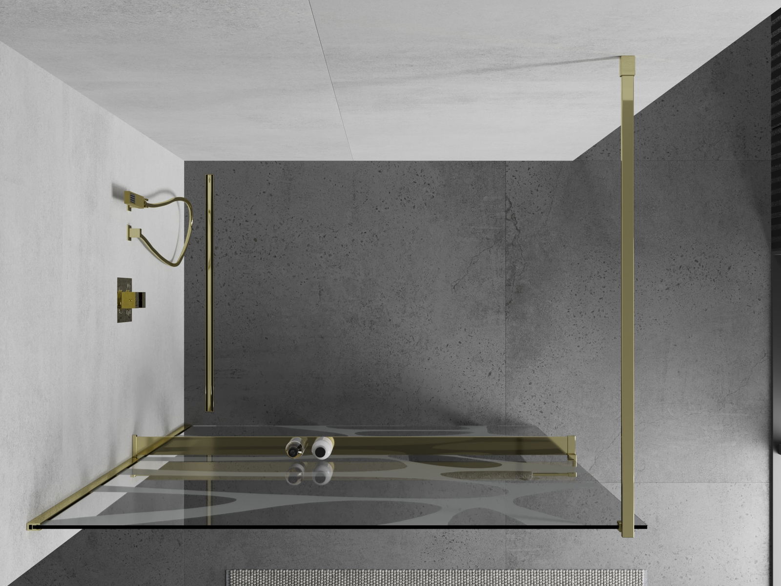 Mexen Kioto+ Dušo siena su lentyna Walk-in 120 x 200 cm, balta banga, auksinė - 800-120-121-50-97