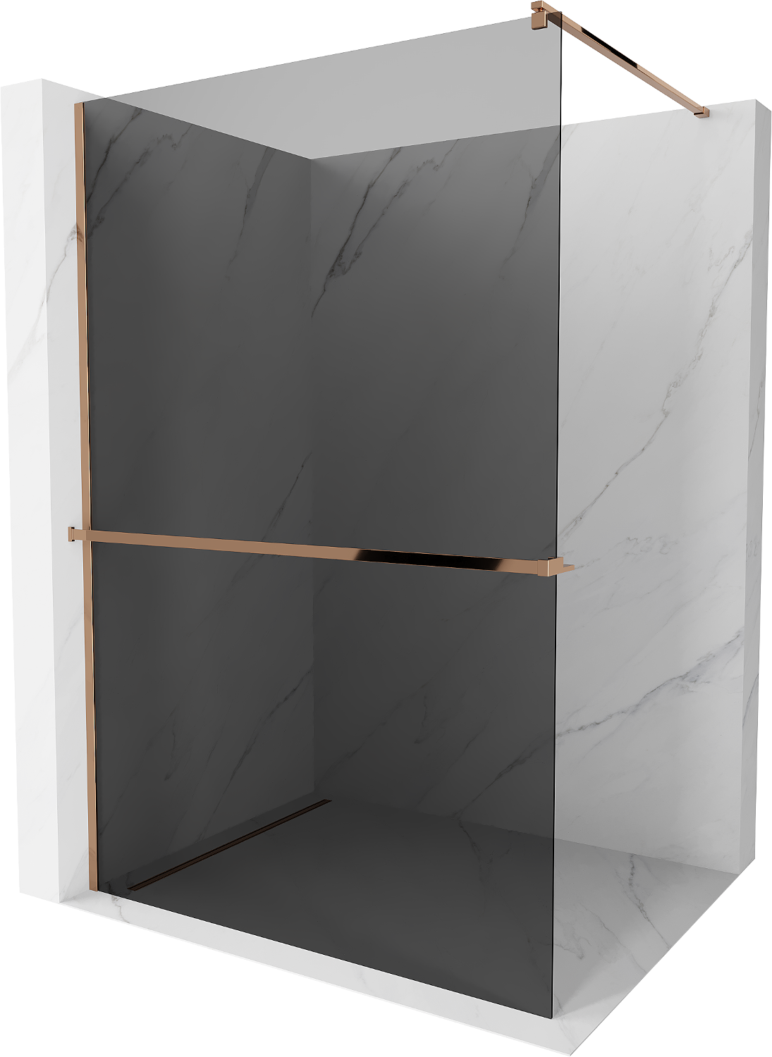 Mexen Kioto+ dušo sienelė su lentynėle Walk-in 110 x 200 cm, grafitas, rožinis auksas - 800-110-121-60-40