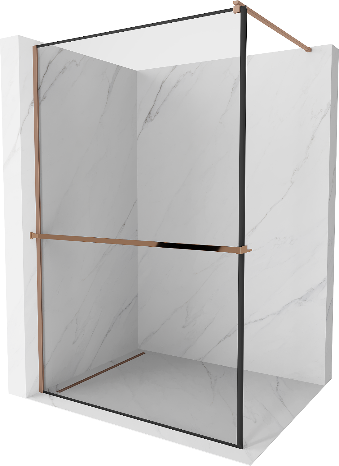 Mexen Kioto+ dušo siena su lentyna Walk-in 100 x 200 cm, juodas rėmelis, rožinis auksas - 800-100-121-60-70