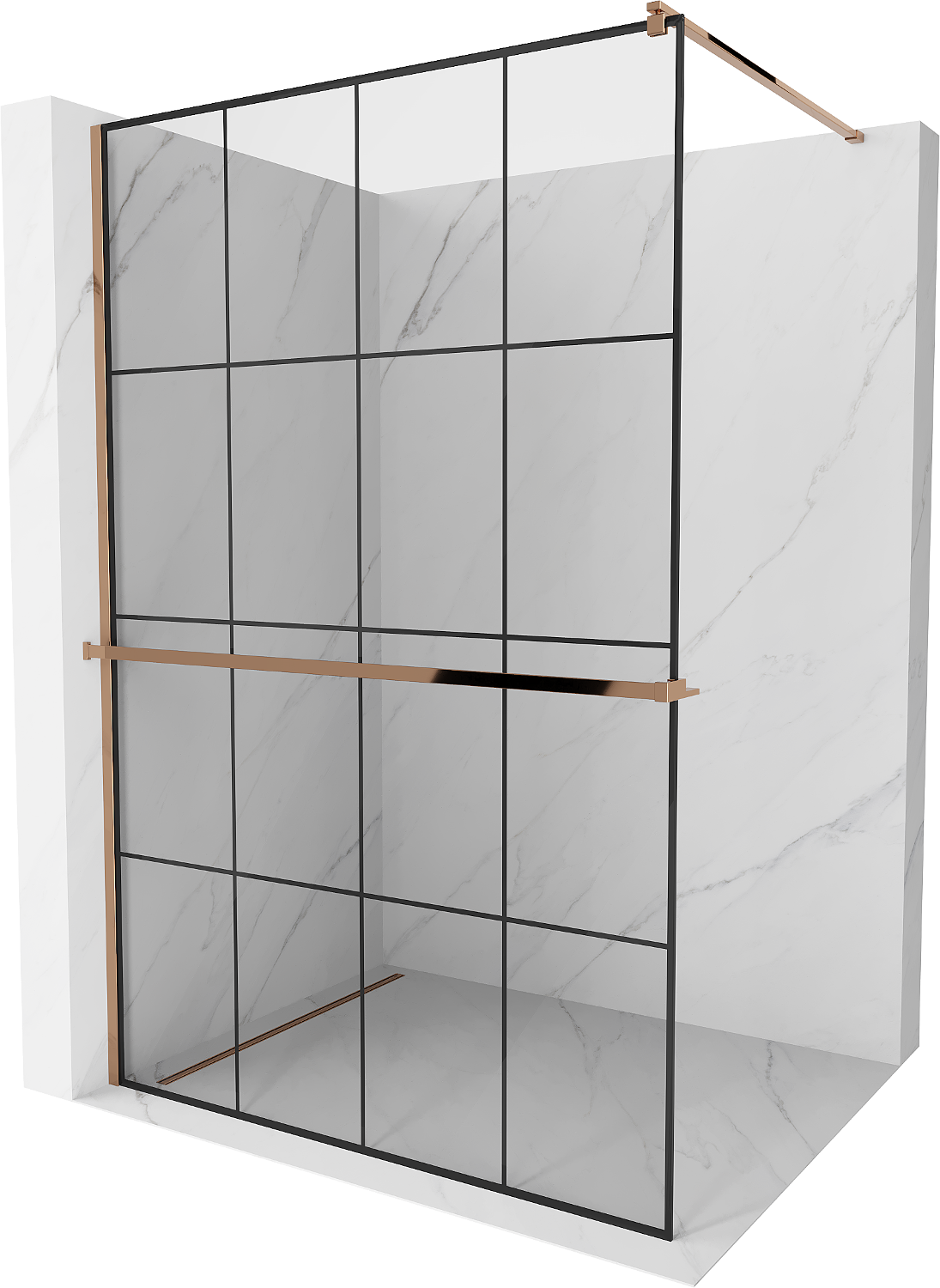 Mexen Kioto+ dušo siena su lentyna Walk-in 130 x 200 cm, juodas tinklelis, rožinis auksas - 800-130-121-60-77