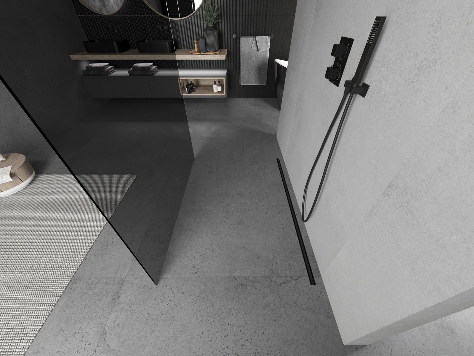 Mexen Kioto laisvai stovinti dušo siena 100 x 200 cm, grafitas 8 mm, juoda - 800-100-002-70-40