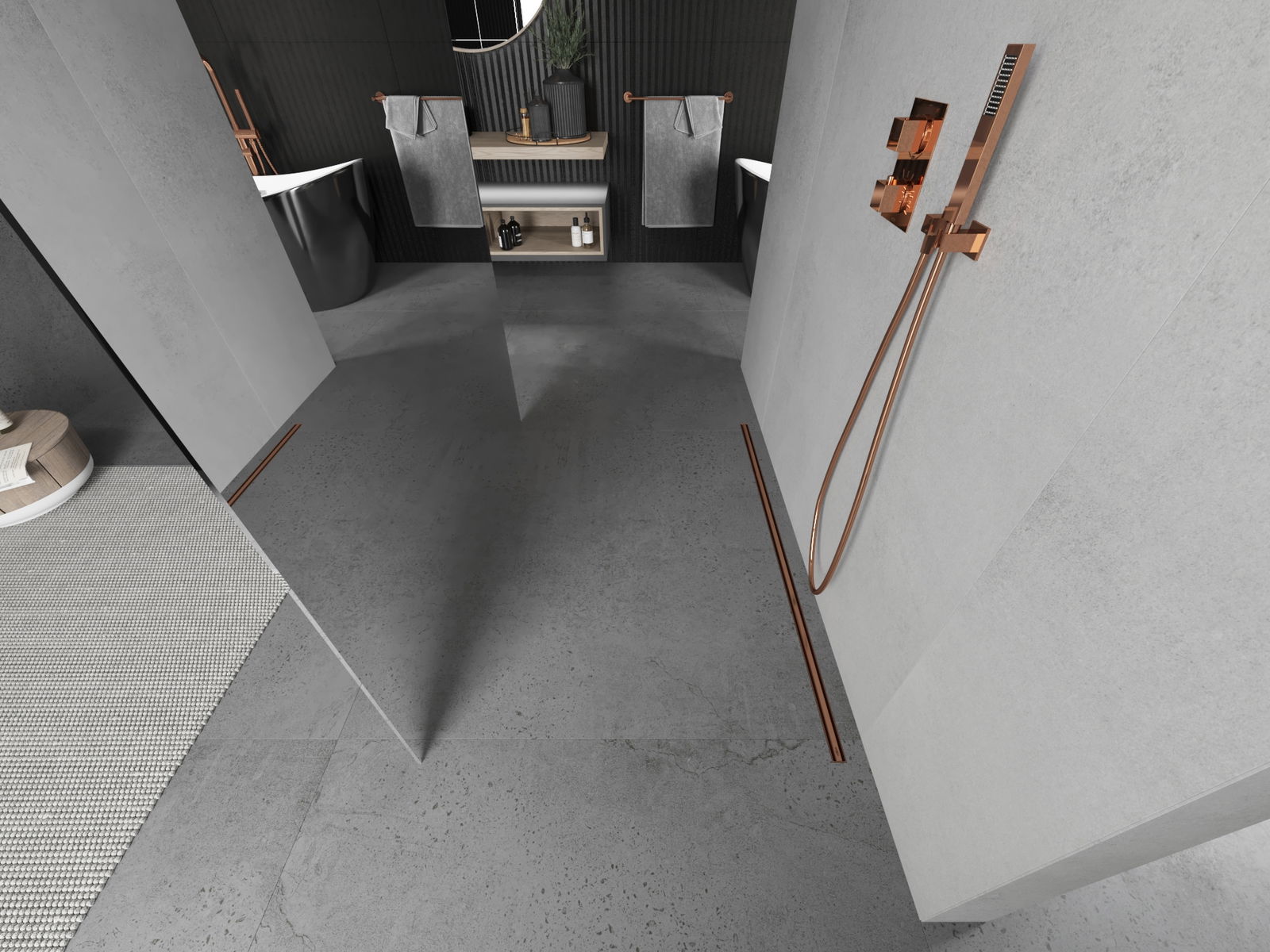 Mexen Kioto laisvai stovinti dušo sienelė 100 x 200 cm, veidrodis 8 mm, rožinis auksas - 800-100-002-60-50