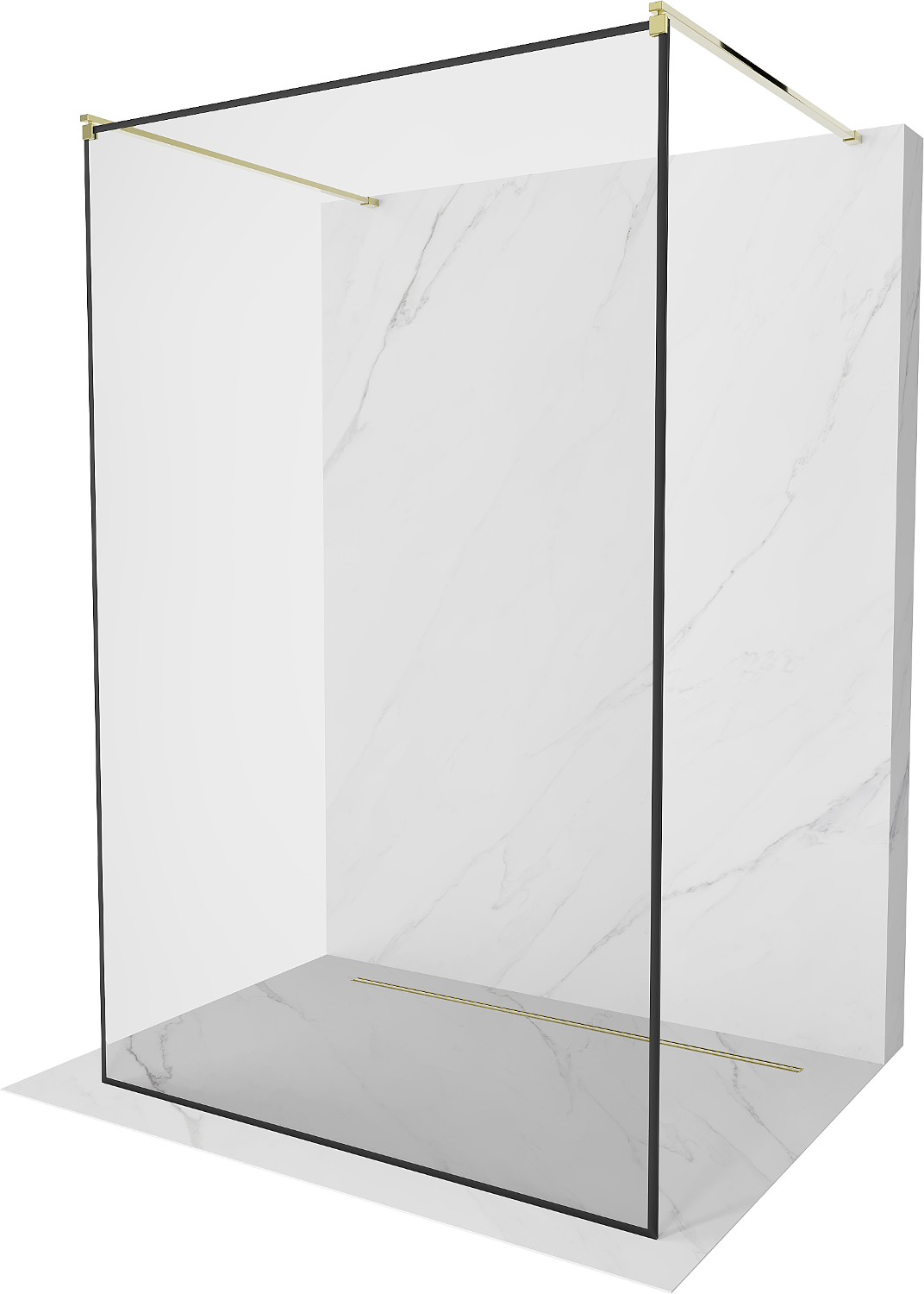 Mexen Kioto laisvai stovinti dušo siena 100 x 200 cm, juodas rėmelis 8 mm, auksinis- 800-100-002-50-70