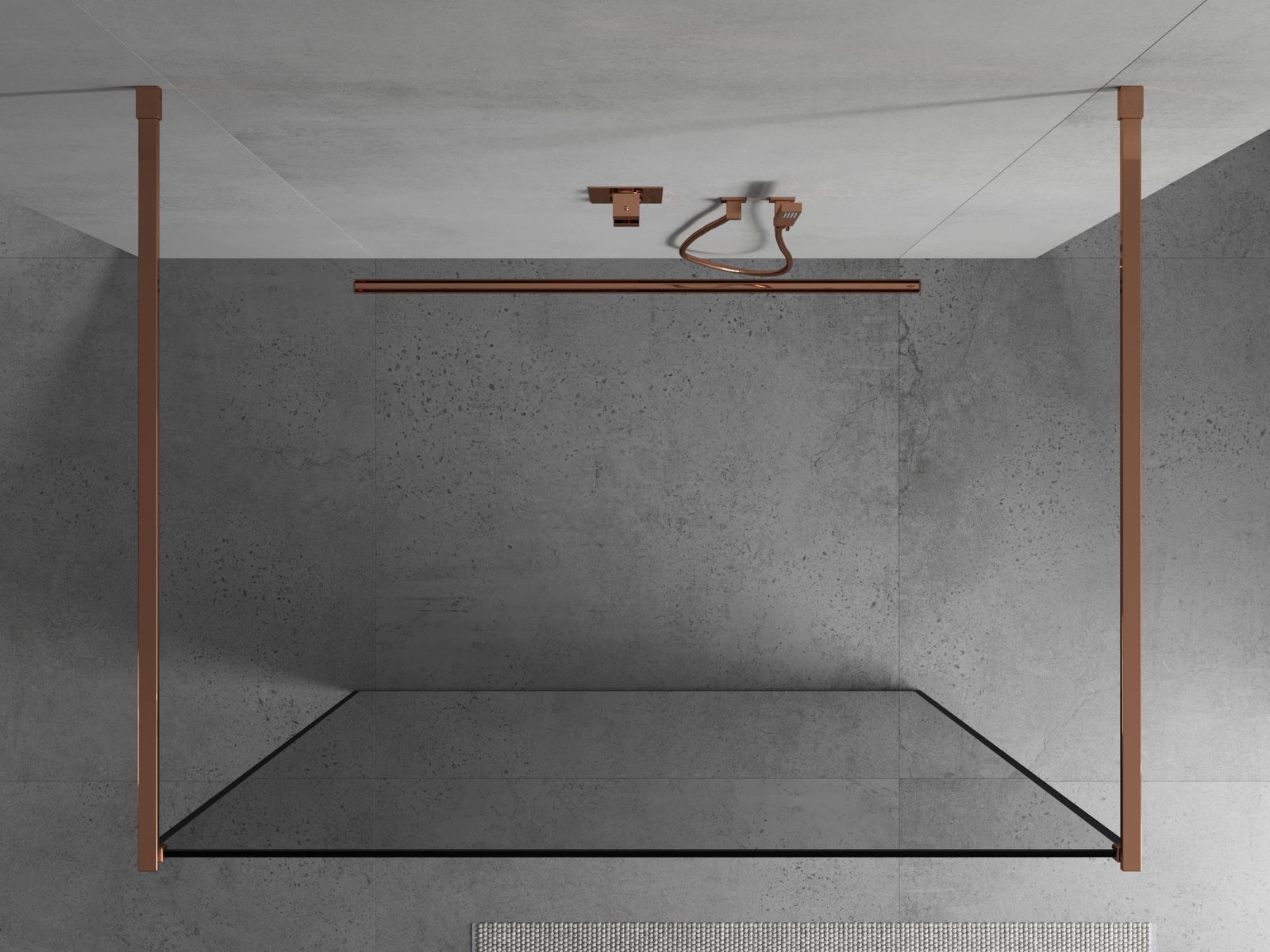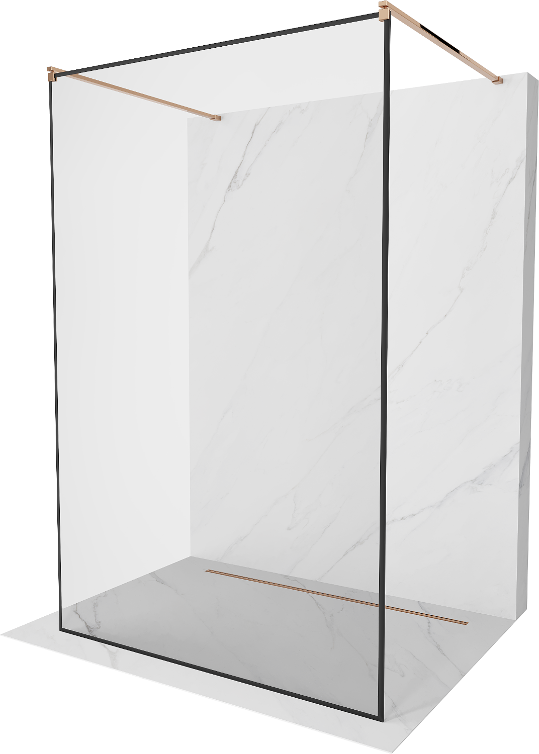 Mexen Kioto laisvai stovinti dušo sienelė 110 x 200 cm, juodas rėmelis 8 mm, rožinis auksas - 800-110-002-60-70