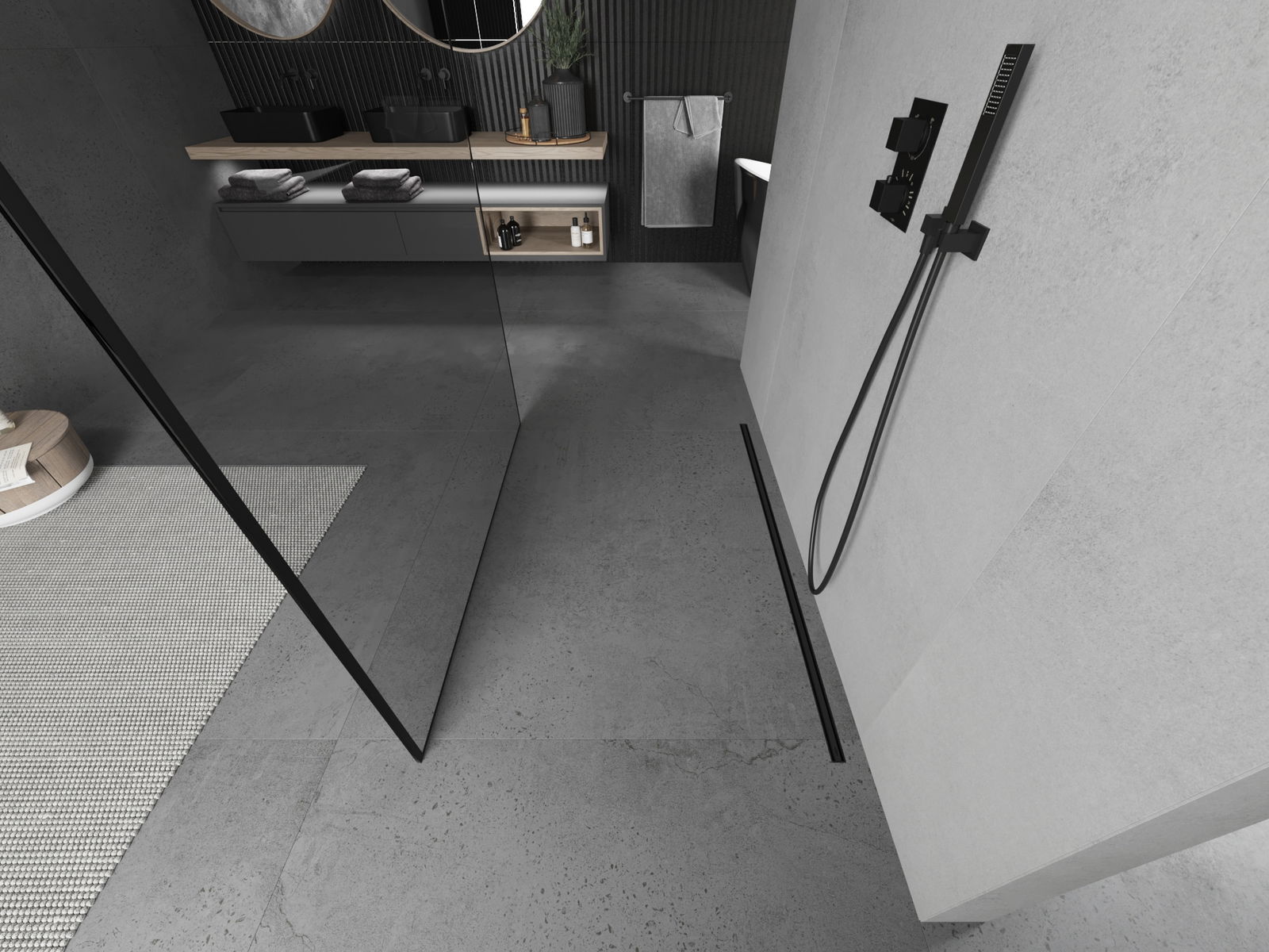 Mexen Kioto laisvai stovinti dušo siena 140 x 200 cm, juodas rėmelis 8 mm, juoda - 800-140-002-70-70