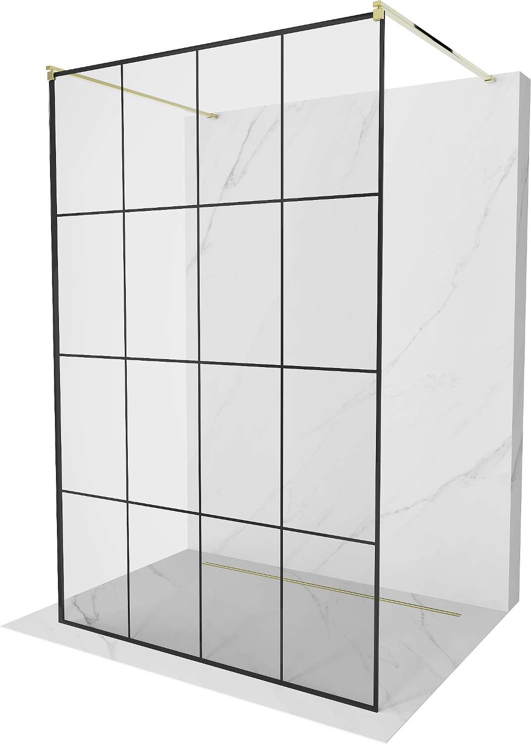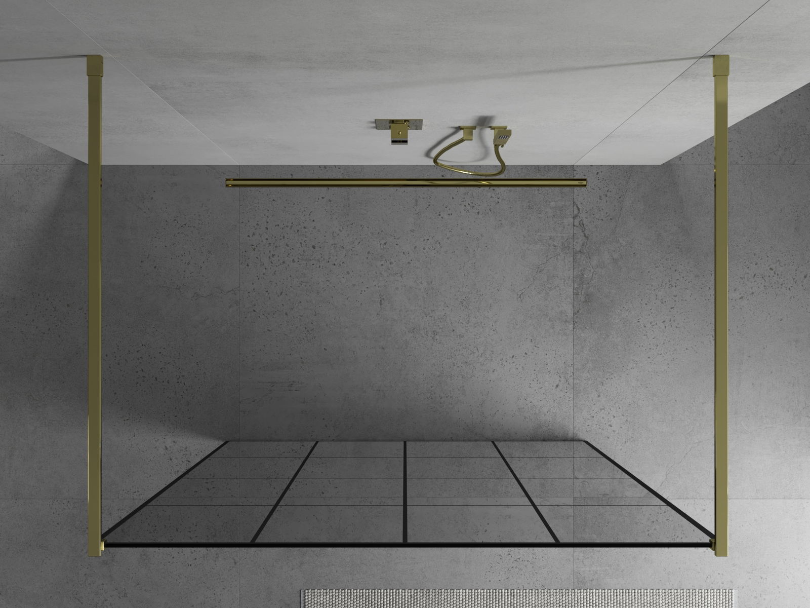 Mexen Kioto laisvai stovinti dušo siena 140 x 200 cm, juodas tinklelis 8 mm, auksinis - 800-140-002-50-77