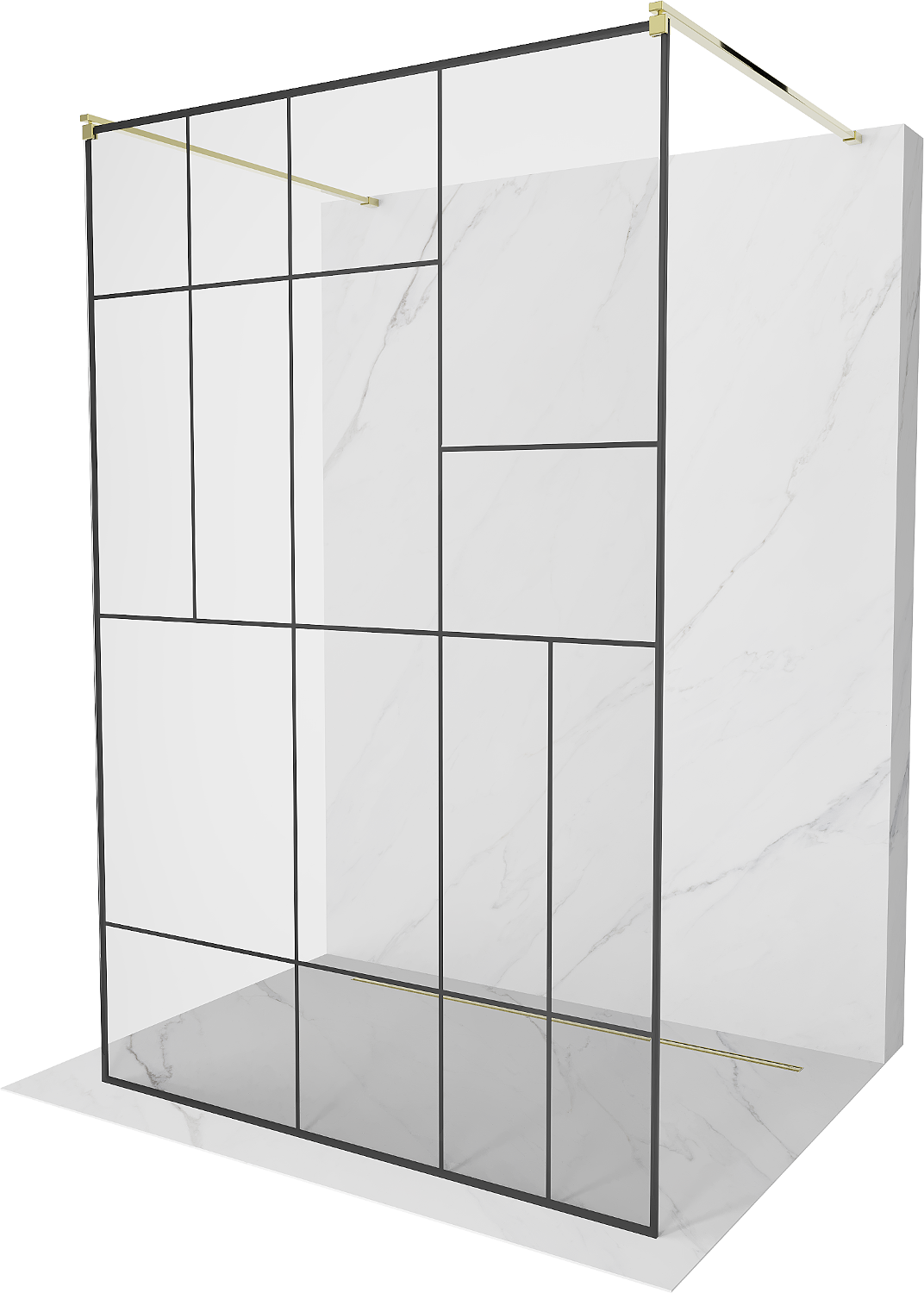 Mexen Kioto laisvai pastatoma dušo sienelė 130 x 200 cm, juodas raštas 8 mm, auksinė - 800-130-002-50-78