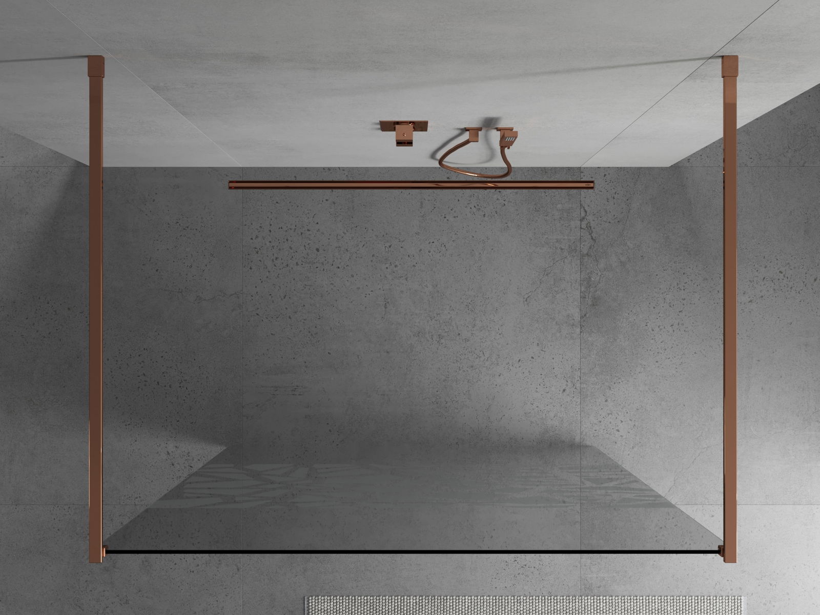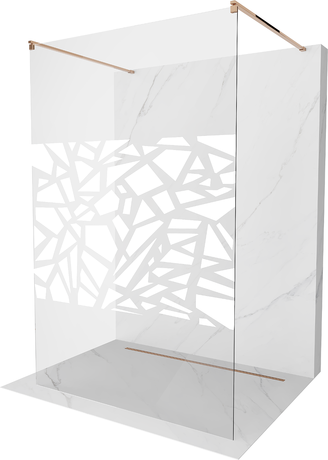 Mexen Kioto laisvai stovinti dušo sienelė 100 x 200 cm, baltas raštas 8 mm, rožinis auksas - 800-100-002-60-85