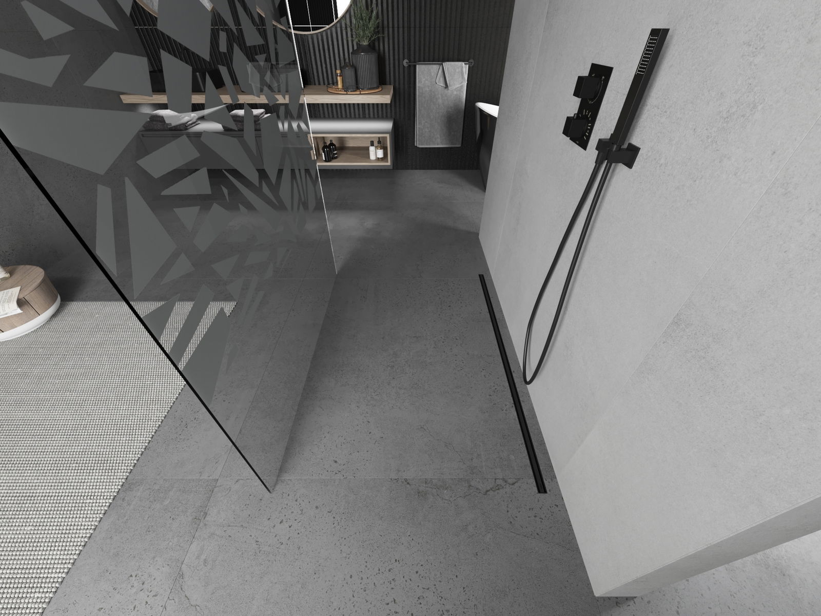 Mexen Kioto laisvai stovinti dušo sienelė 120 x 200 cm, baltas raštas 8 mm, juoda - 800-120-002-70-85