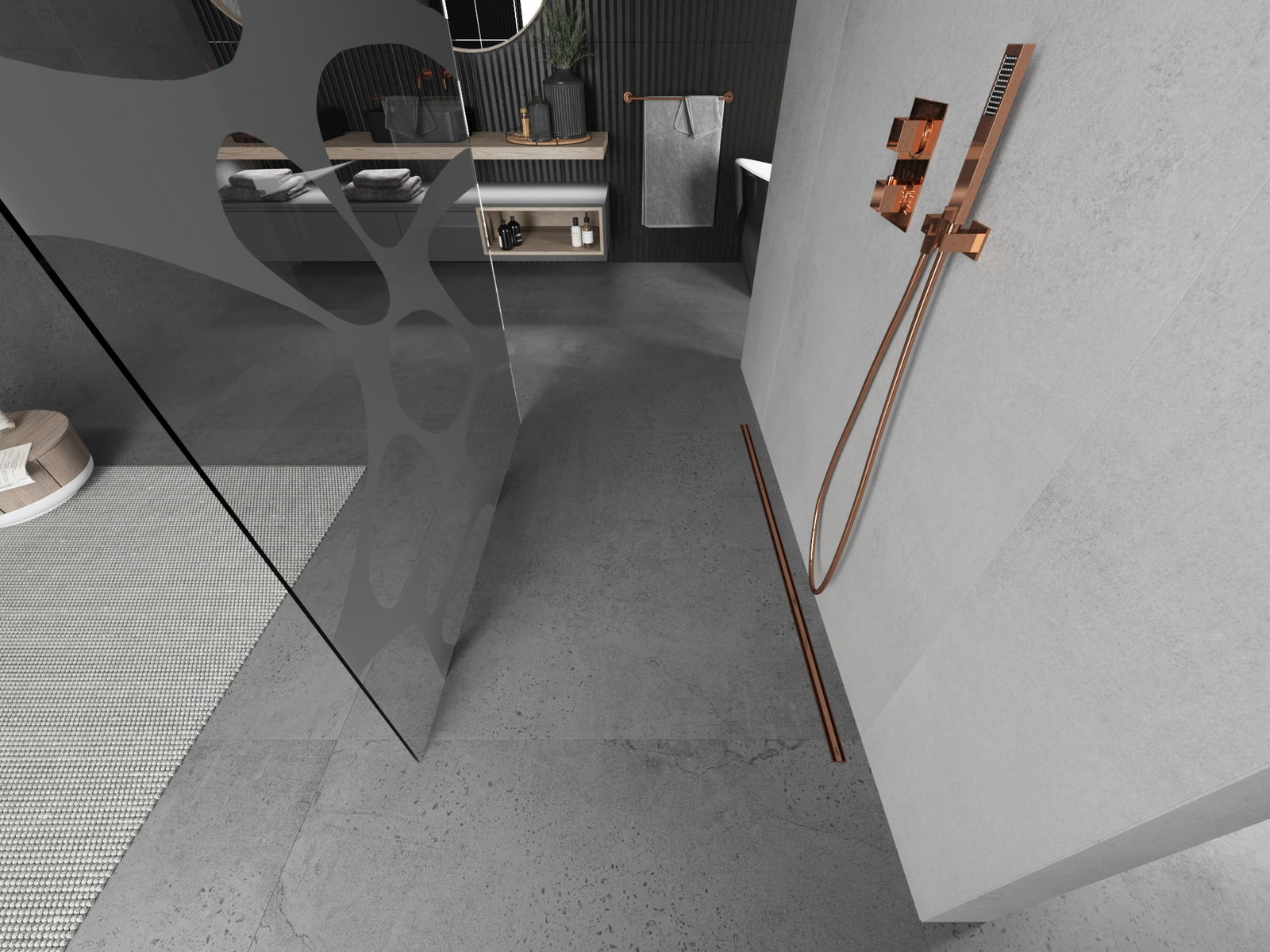 Mexen Kioto laisvai stovinti dušo siena 120 x 200 cm, balta banga 8 mm, rožinis auksas - 800-120-002-60-97