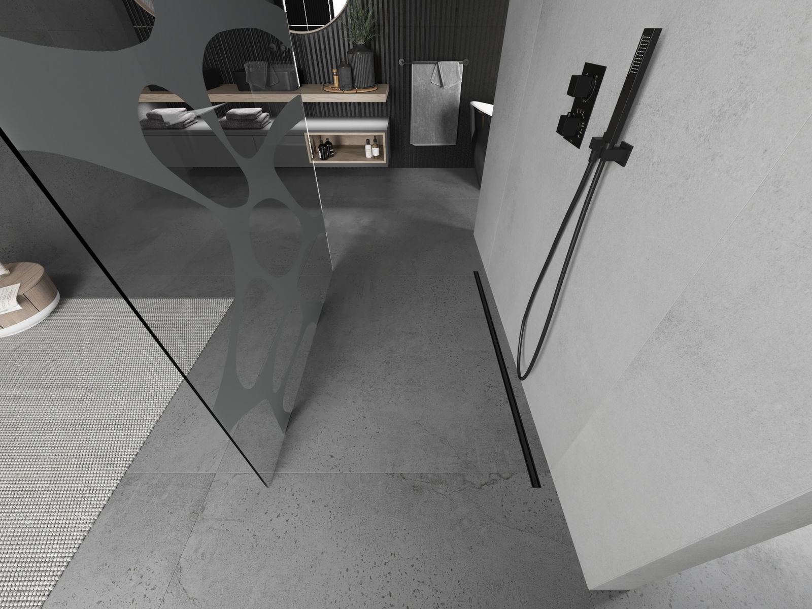 Mexen Kioto laisvai stovinti dušo siena 110 x 200 cm, balta banga 8 mm, juoda - 800-110-002-70-97
