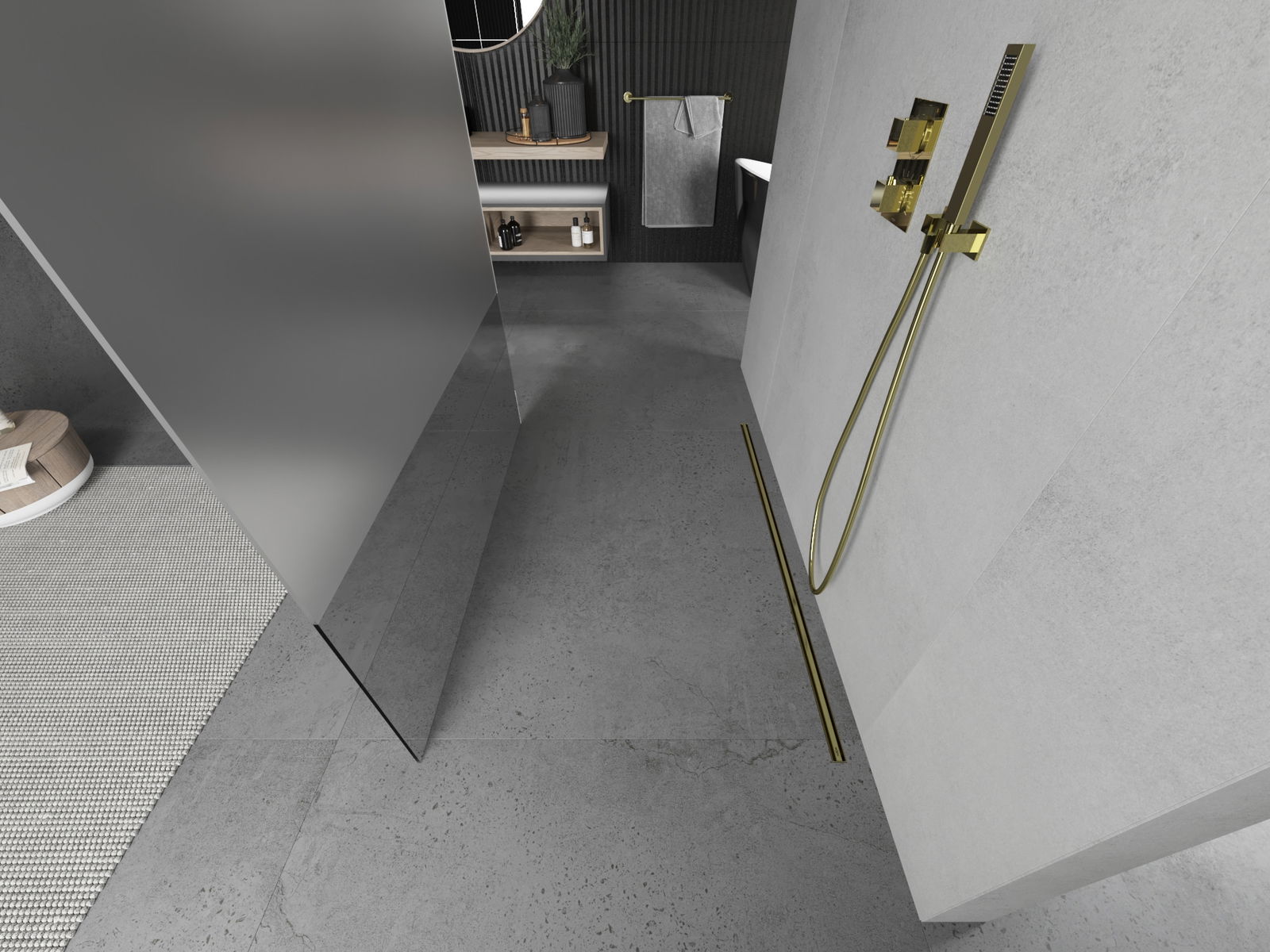Mexen Kioto laisvai stovinti dušo siena 140 x 200 cm, permatoma/matinė 8 mm, auksinė - 800-140-002-50-35