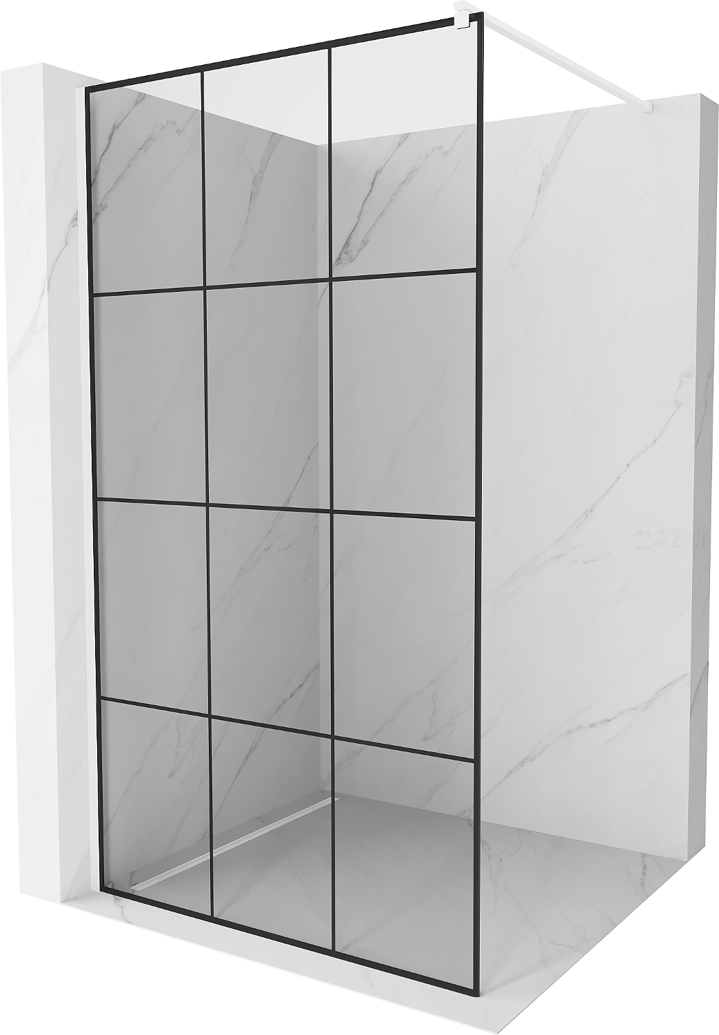 Mexen Kioto dušo sienelė Walk-in 100 x 200 cm, juodas tinklelis 8 mm, balta - 800-100-101-20-77
