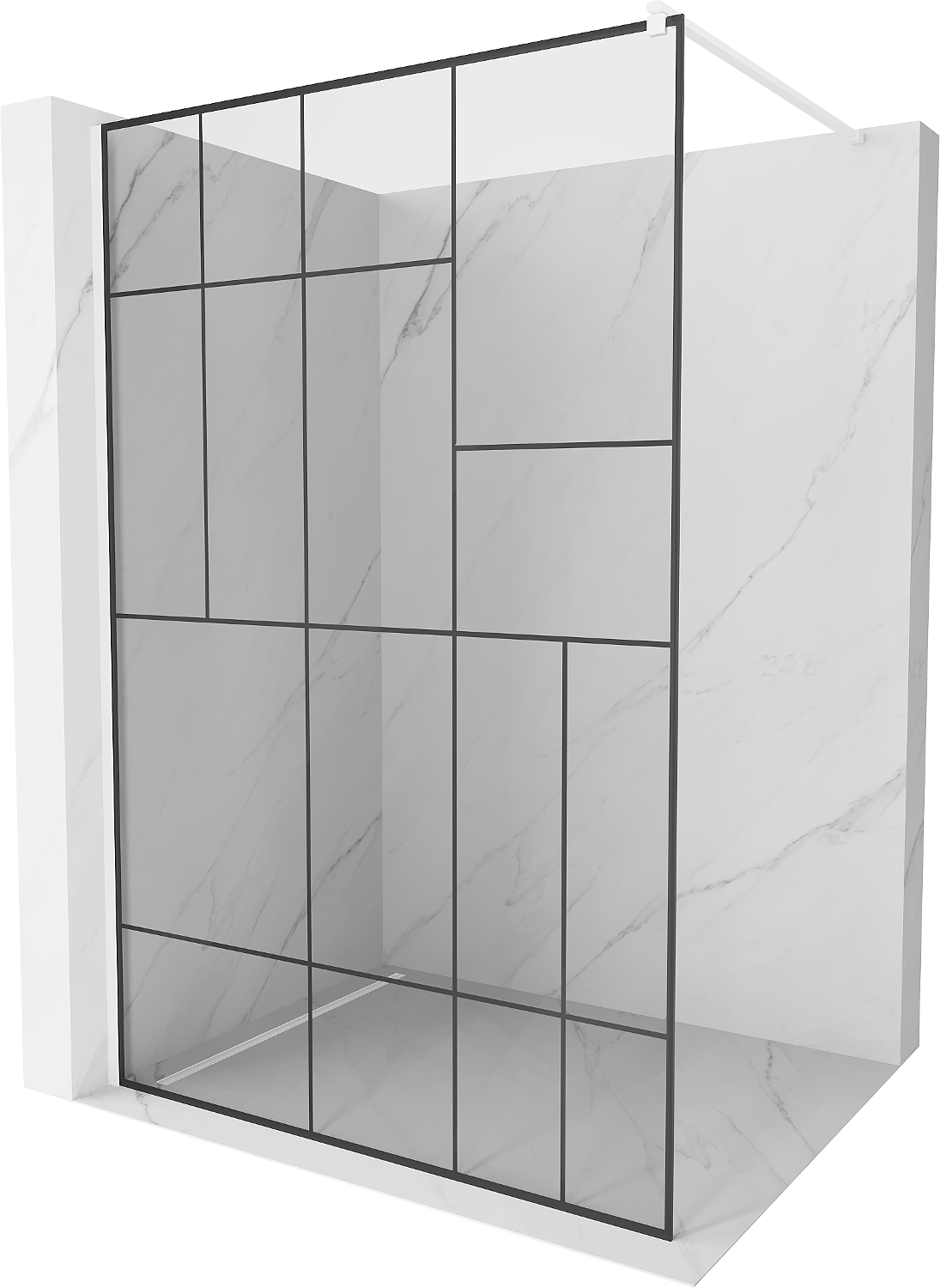 Mexen Kioto dušo siena Walk-in 120 x 200 cm, juodas raštas 8 mm, balta - 800-120-101-20-78