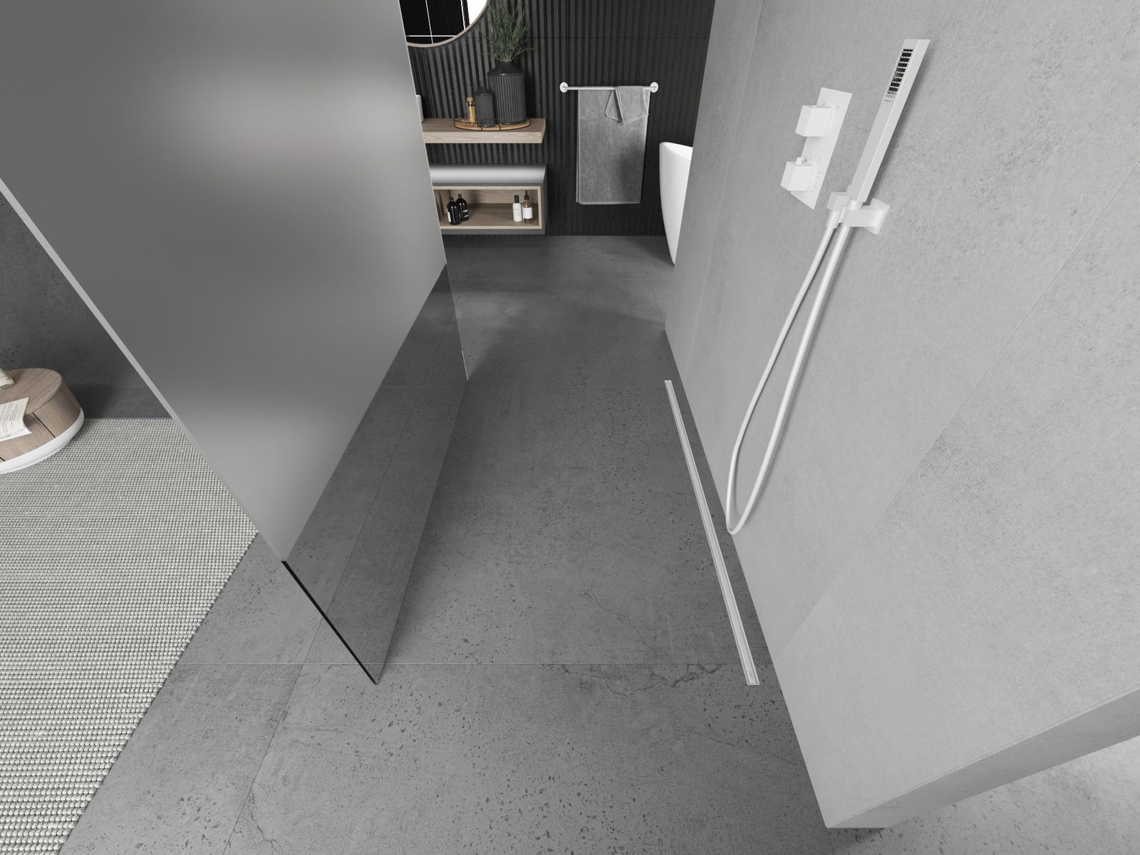 Mexen Kioto laisvai stovinti dušo siena 140 x 200 cm, skaidri/šerkšno 8 mm, balta - 800-140-002-20-35