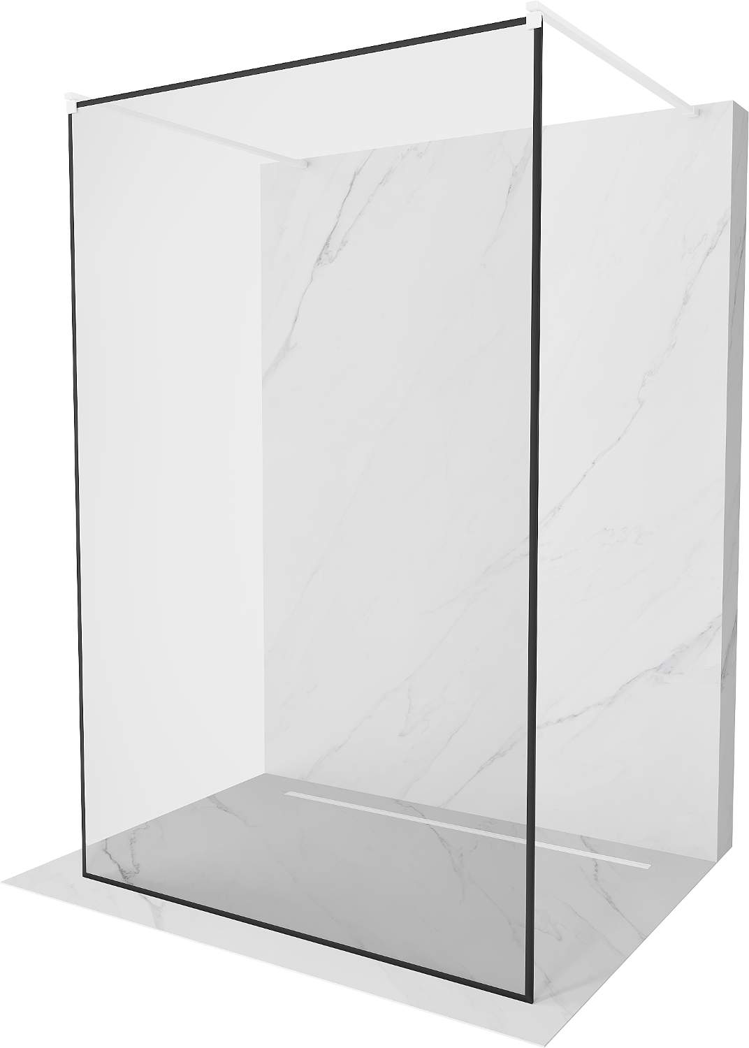 Mexen Kioto laisvai stovinti dušo siena 130 x 200 cm, juodas rėmas 8 mm, balta - 800-130-002-20-70