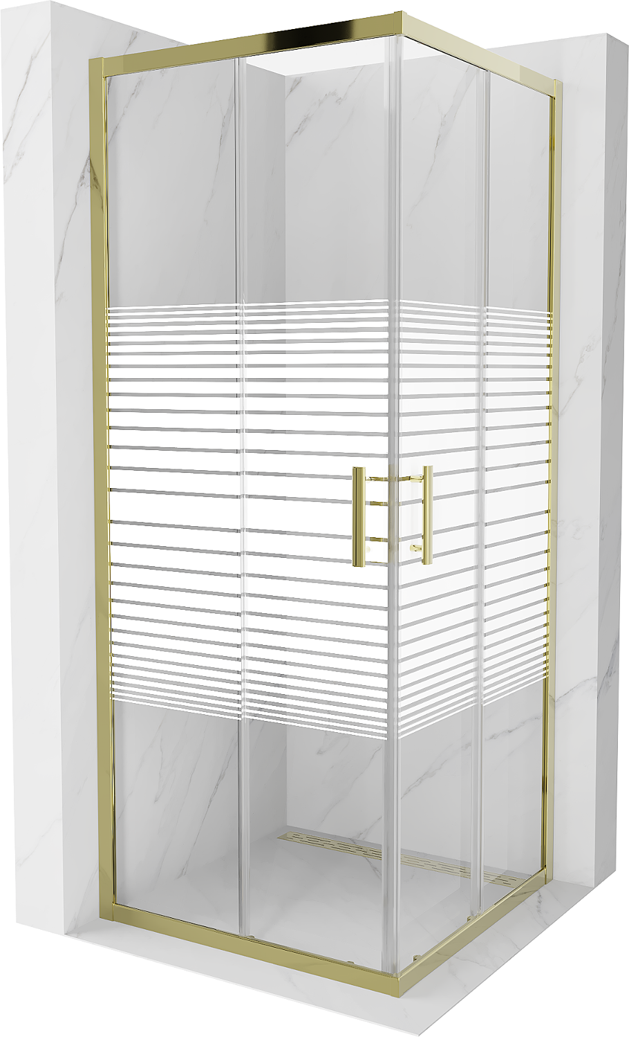 Mexen Rio Kvadratinė dušo kabina 80 x 80 cm, balti dryžiai, auksinė - 860-080-080-50-20