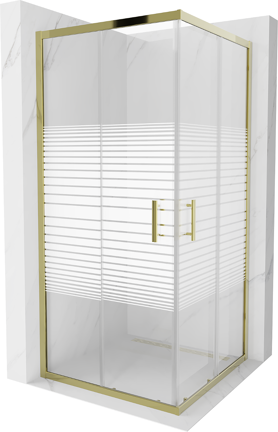 Mexen Rio kvadratinė dušo kabina 90 x 90 cm, baltos juostos, auksinė - 860-090-090-50-20