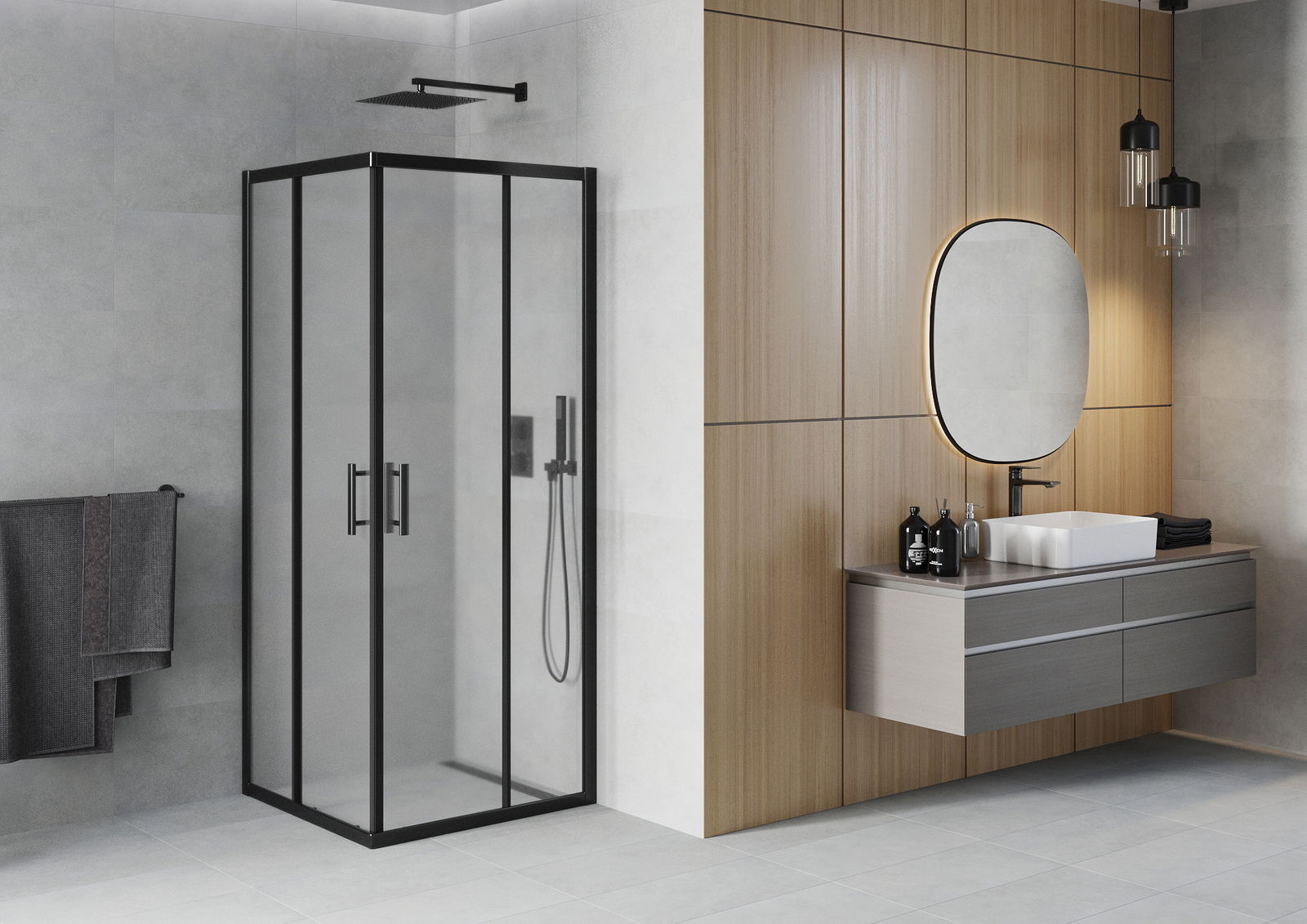 Mexen Rio kvardratinė dušo kabina 90 x 90 cm, permatoma, juoda - 860-090-090-70-00