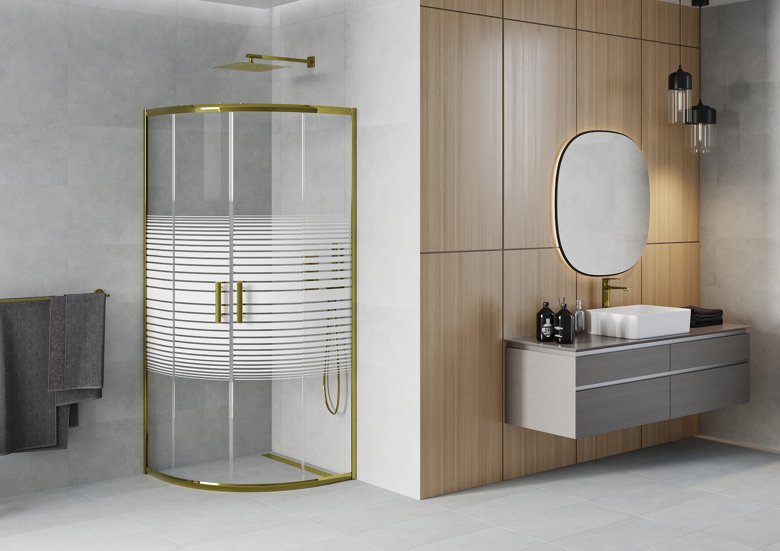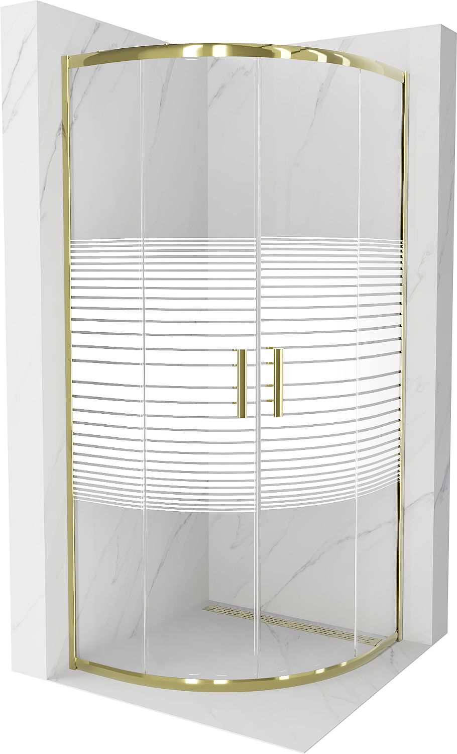 Mexen Rio pusapvalė dušo kabina 70 x 70 cm, balti dryžiai, auksinė - 863-070-070-50-20