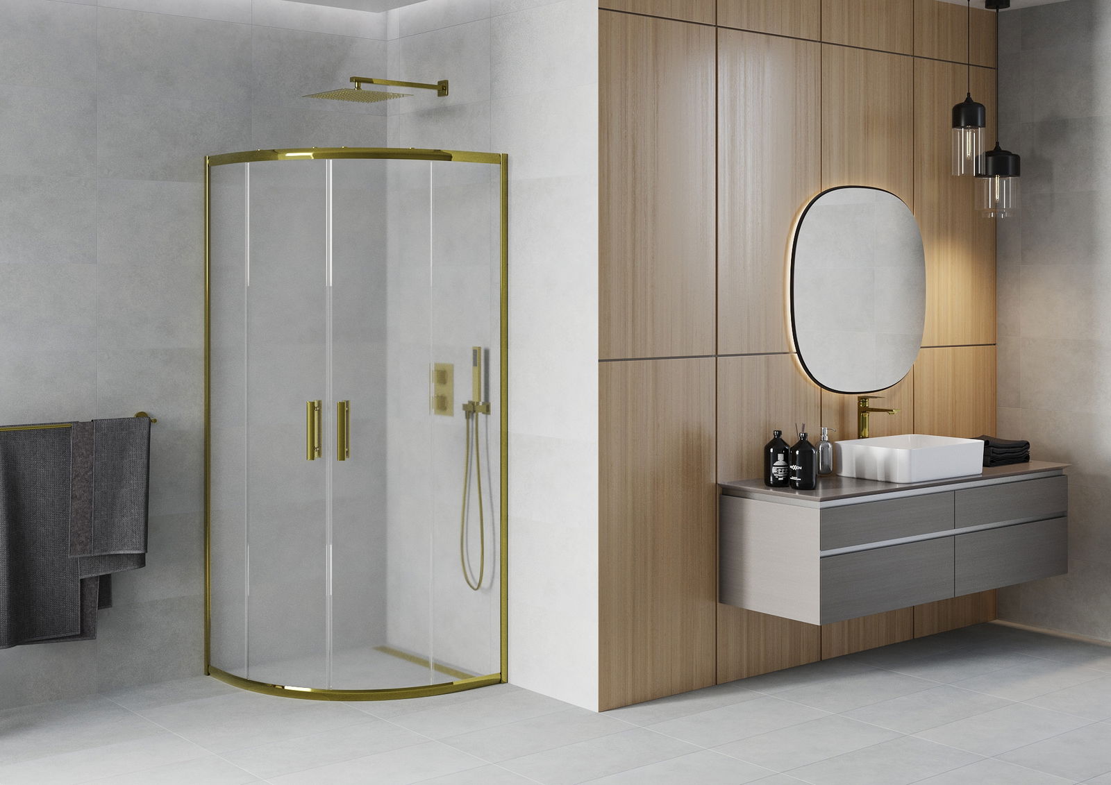 Mexen Rio pusapvalė dušo kabina 80 x 80 cm, matinė, auksinė - 863-080-080-50-30