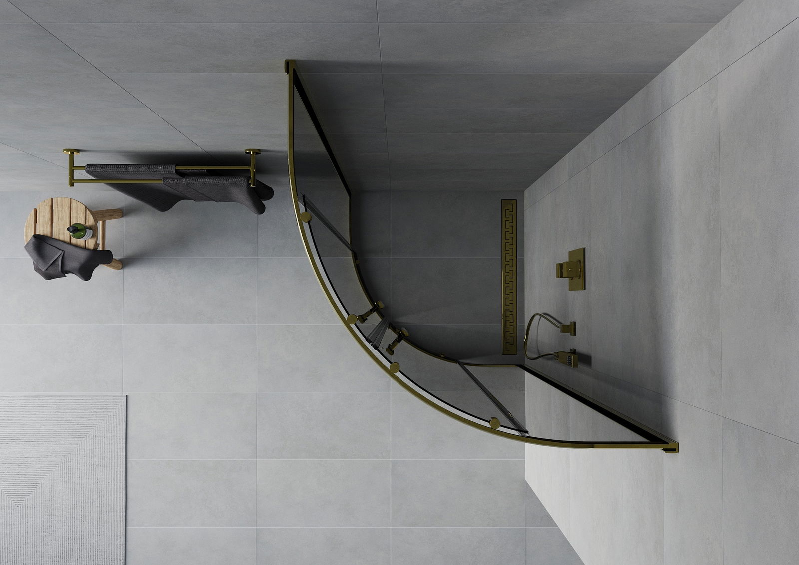 Mexen Rio pusapvalė dušo kabina 80 x 80 cm, grafitas, auksinė - 863-080-080-50-40
