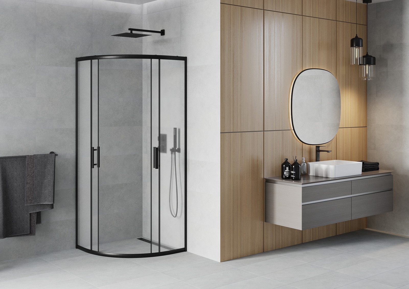 Produktą, atsižvelgiant į poreikius, galima sumontuoti tiek ant dušo padėklo, tiek tiesiogiai ant grindų. Universalus montavimo būdas leidžia pritaikyti produktą įvairių tipų vonios kambariams ir erdvės konfigūracijoms.