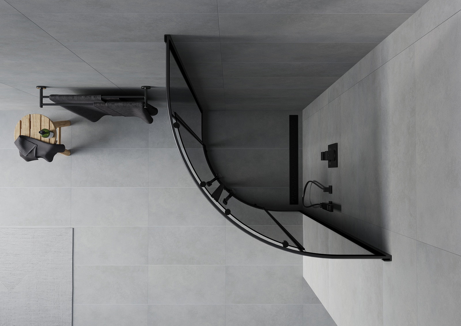 Mexen Rio apvali dušo kabina 80 x 80 cm, grafitas, juoda - 863-080-080-70-40