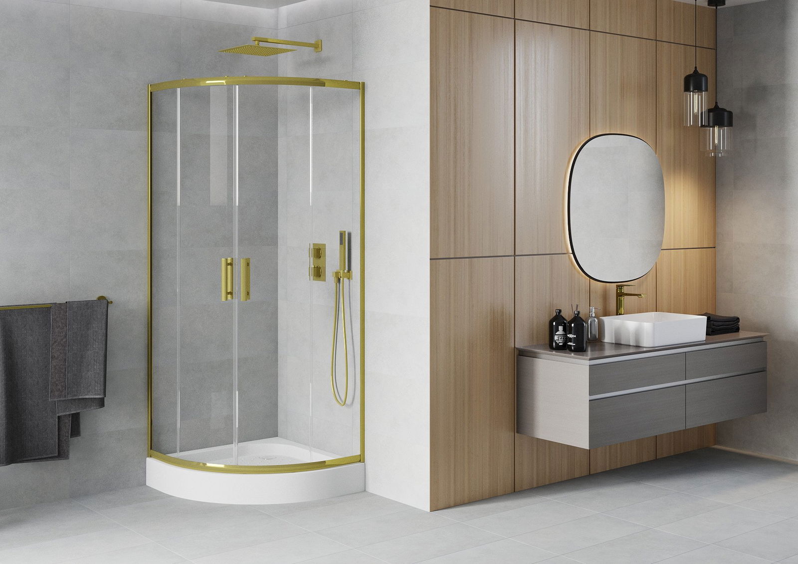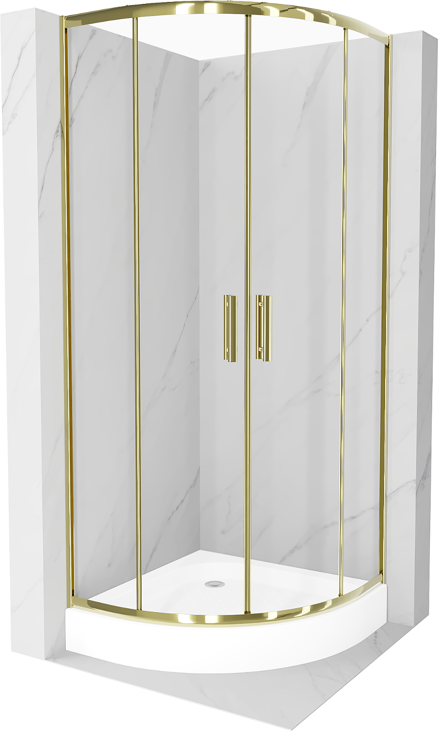 Mexen Rio pusapvalė dušo kabina 70 x 70 cm, skaidri, auksinė + Rio padėklas, baltas - 863-070-070-50-00-4710