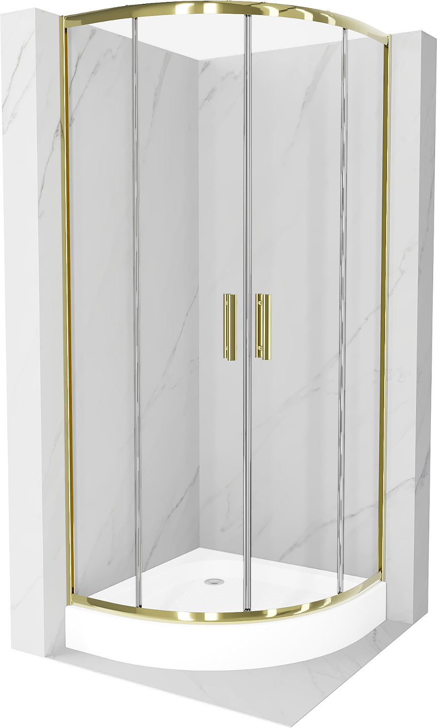 Mexen Rio pusapvalė dušo kabina 80 x 80 cm, permatoma, auksinė + dušo padėklas, baltas - 863-080-080-50-00-4710