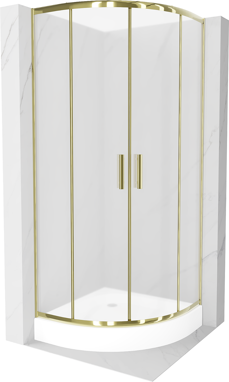 Mexen Rio pusapvalė dušo kabina 80 x 80 cm, matinė, auksinė + Rio padėklas, baltas - 863-080-080-50-30-4710