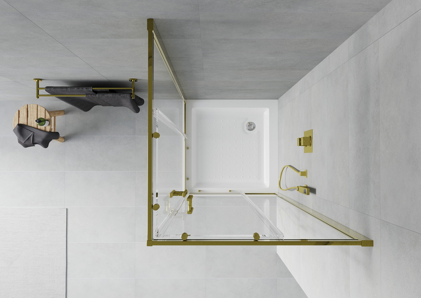 Mexen Rio kvadratinis dušo kabina 70 x 70 cm, permatomas, auksinis + dušo padėklas, baltas - 860-070-070-50-00-4510