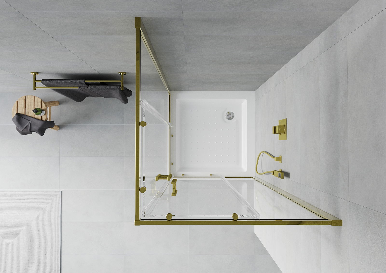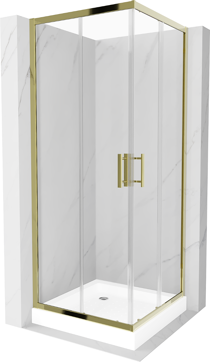Mexen Rio kvadratinė dušo kabina 80 x 80 cm, permatoma, auksinė + Rio dušo padėklas, baltas - 860-080-080-50-00-4510
