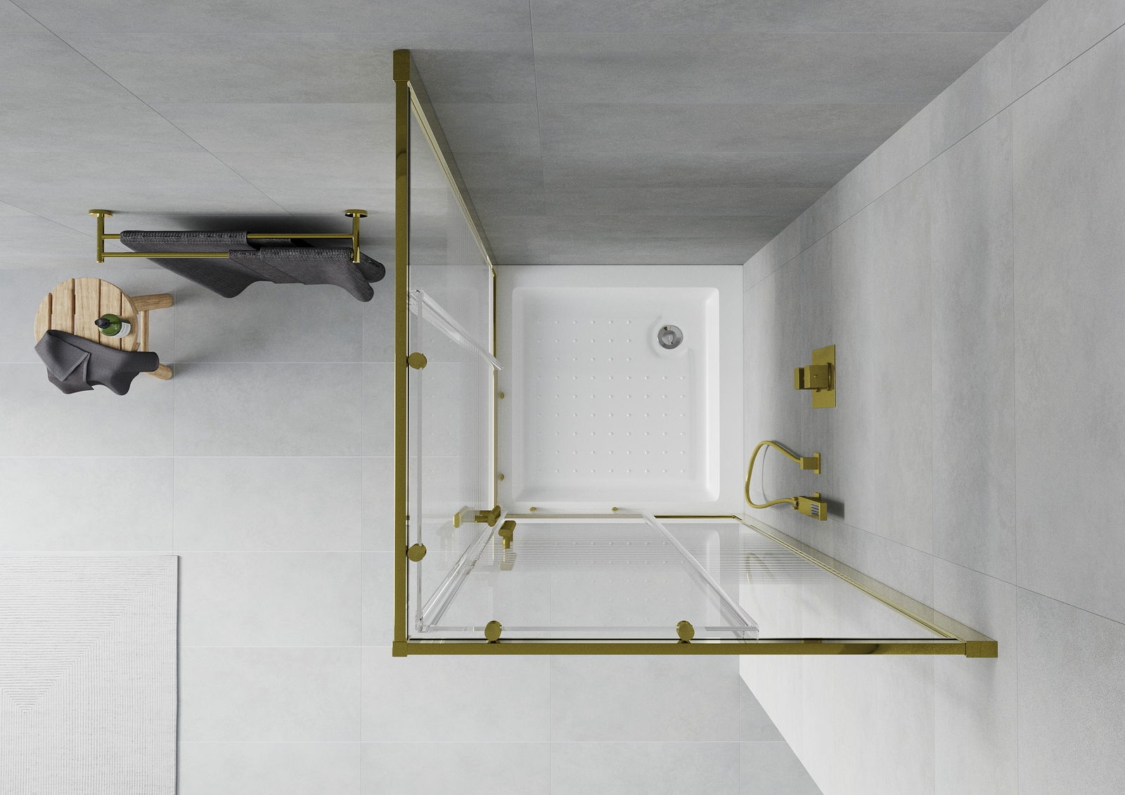 Mexen Rio kvadratinė dušo kabina 70 x 70 cm, baltos juostos, auksinė + padėklas, baltas - 860-070-070-50-20-4510