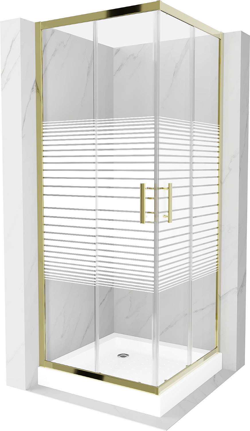 Mexen Rio kvadratinė dušo kabina 80 x 80 cm, baltos juostos, auksinė + padėklas, baltas - 860-080-080-50-20-4510