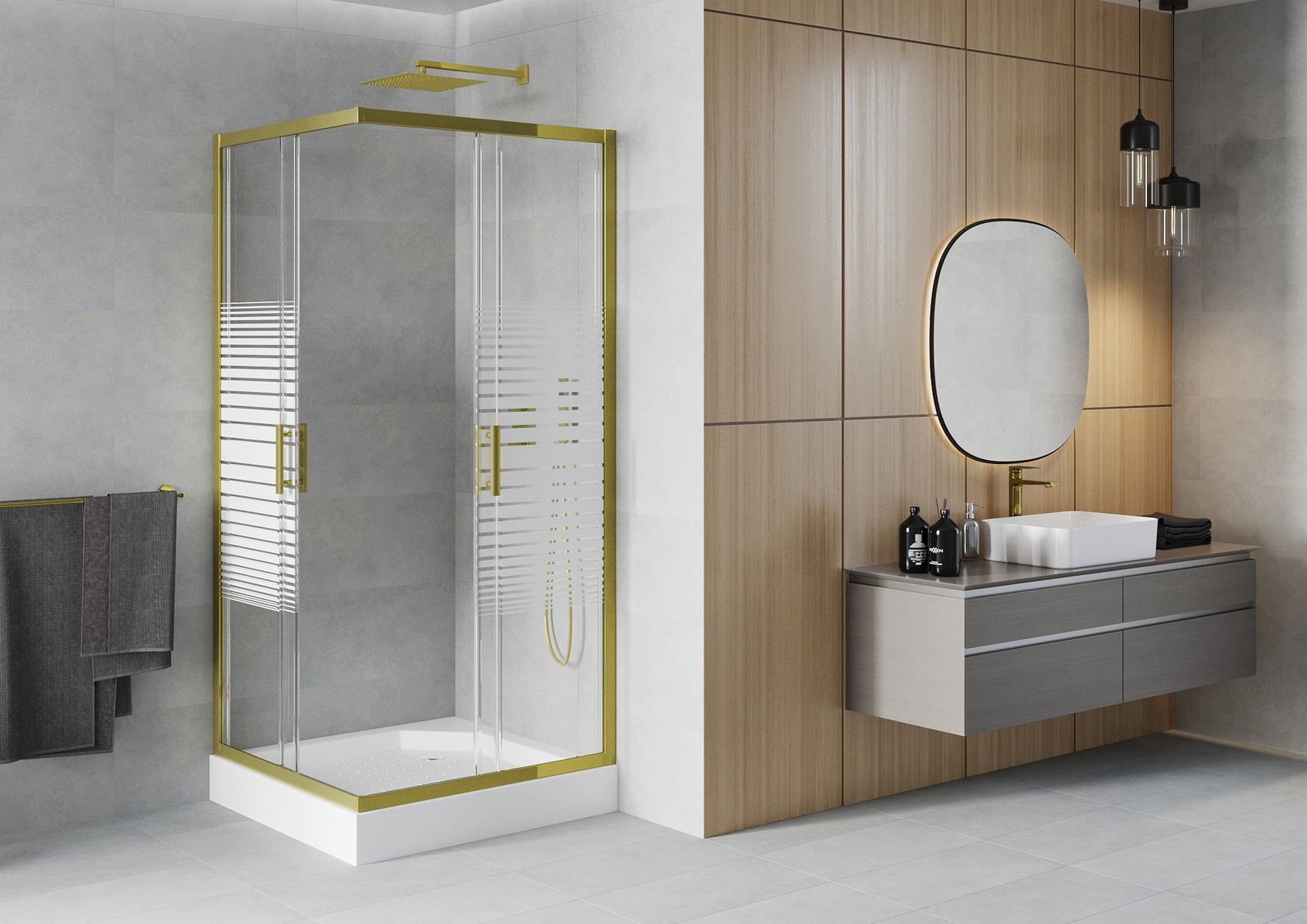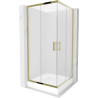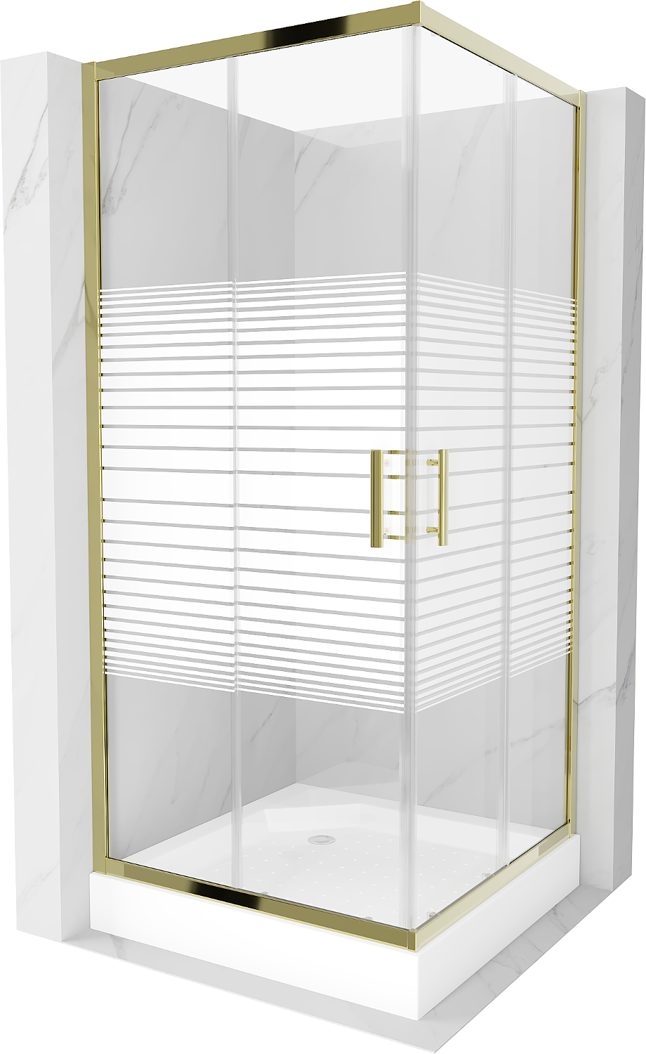 Mexen Rio kvadratinė dušo kabina 90 x 90 cm, baltos juostos, auksinė + kepurė, balta - 860-090-090-50-20-4510