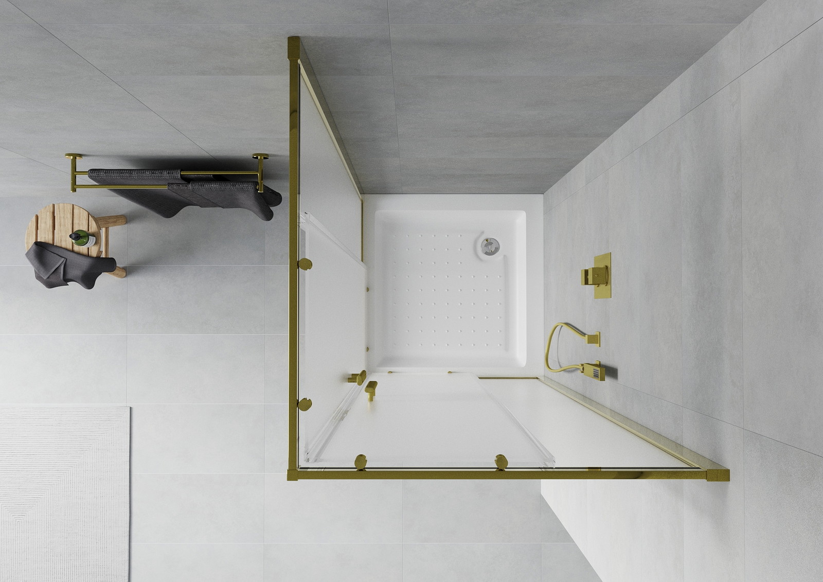 Mexen Rio kvadratinė dušo kabina 70 x 70 cm, matinė, auksinė + dušo padėklas, baltas - 860-070-070-50-30-4510