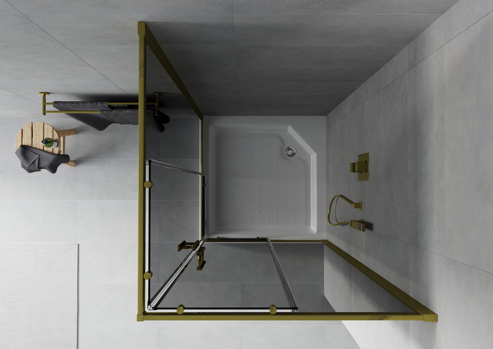 Mexen Rio kvadratinė dušo kabina 90 x 90 cm, grafitas, auksinis + brodelis Rio, baltas - 860-090-090-50-40-4510