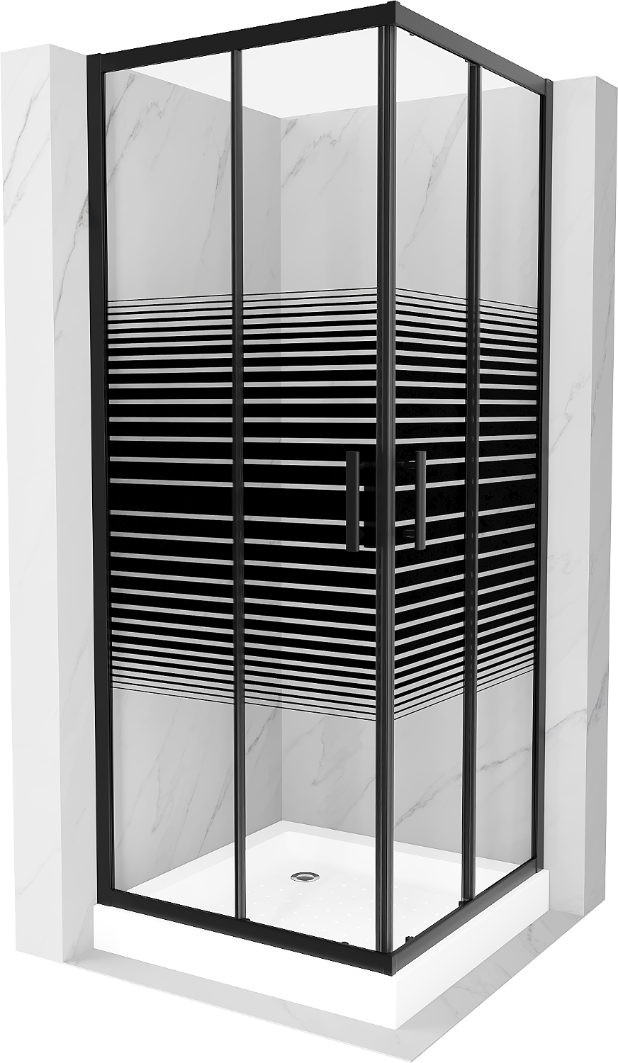 Mexen Rio kvadratinė dušo kabina 80 x 80 cm, juodos juostos, juoda + padėklas, baltas - 860-080-080-70-20-4510