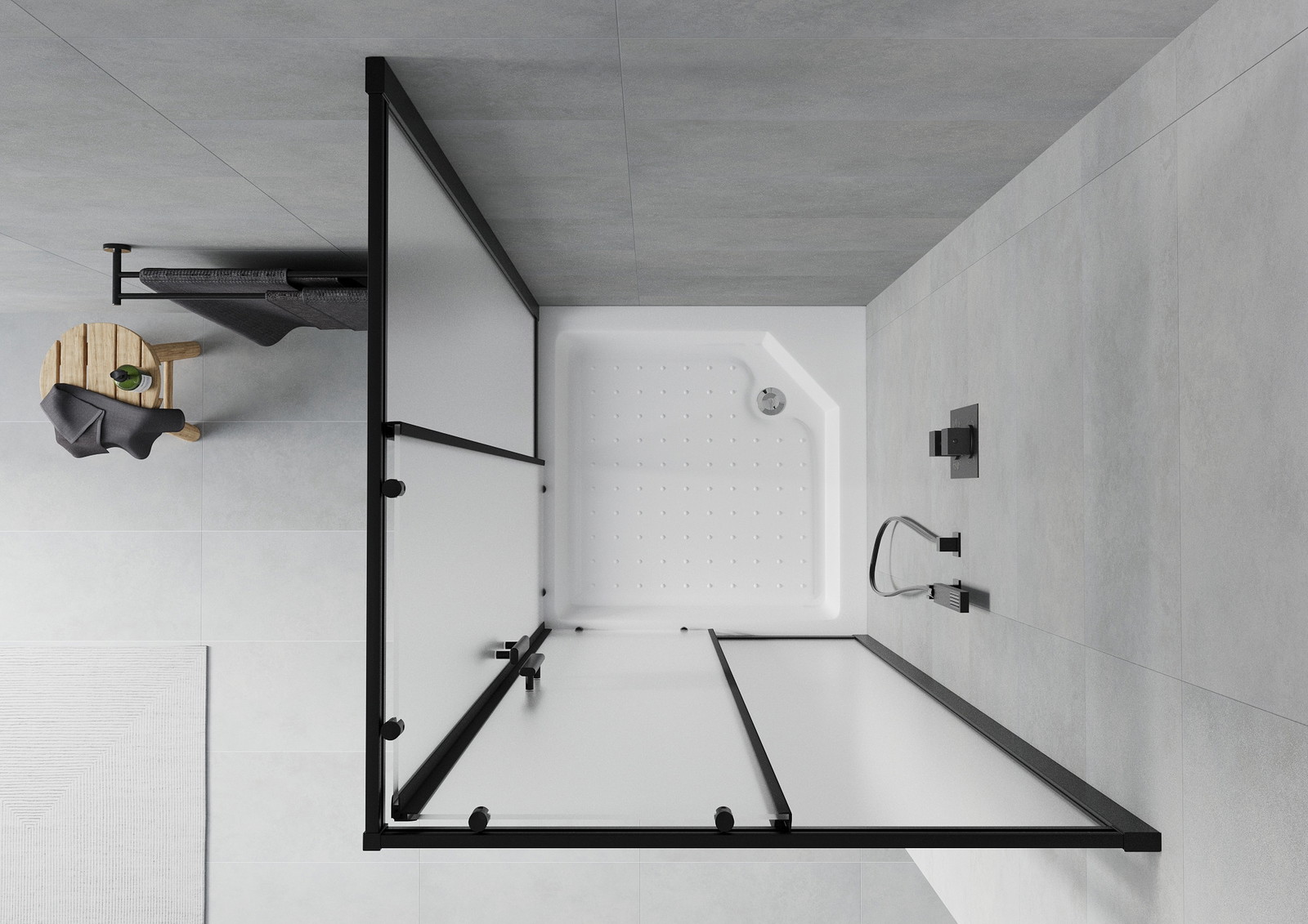 Mexen Rio kvadratinė dušo kabina 90 x 90 cm, matinė, juoda + padėklas, baltas - 860-090-090-70-30-4510