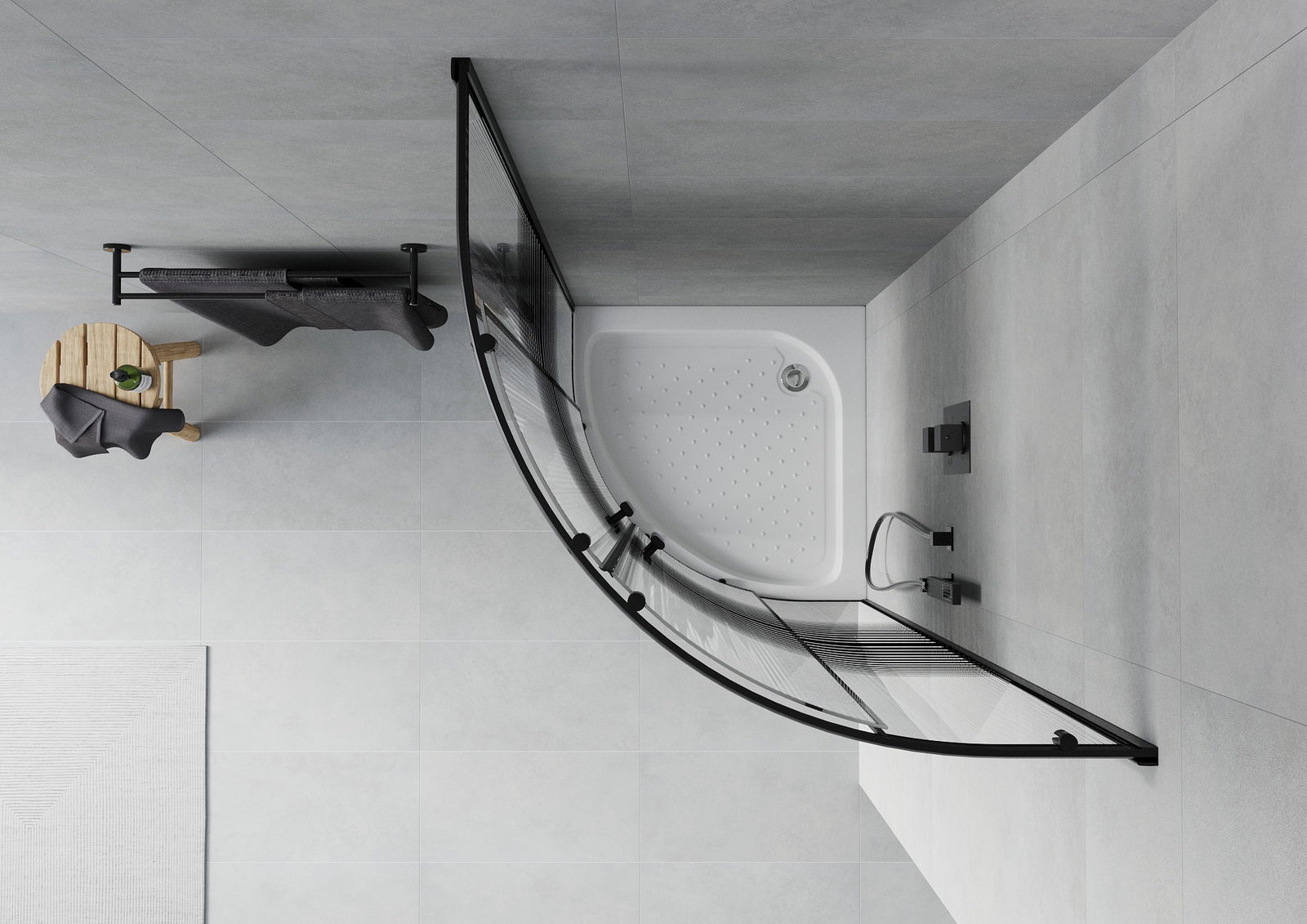 Mexen Rio dušo kabina pusapvalė 70 x 70 cm, juodos juostos, juoda + padėklas, baltas - 863-070-070-70-20-4710