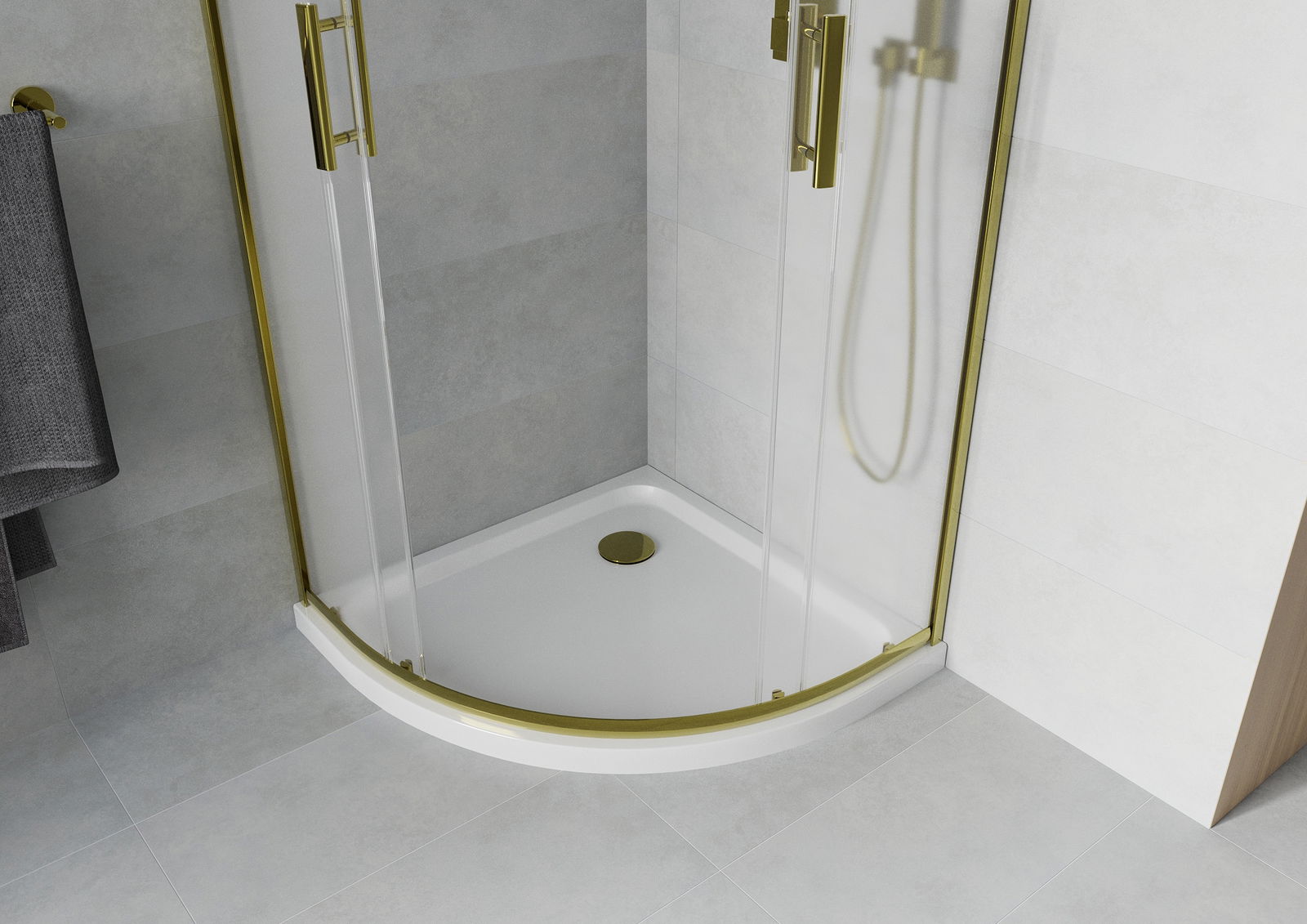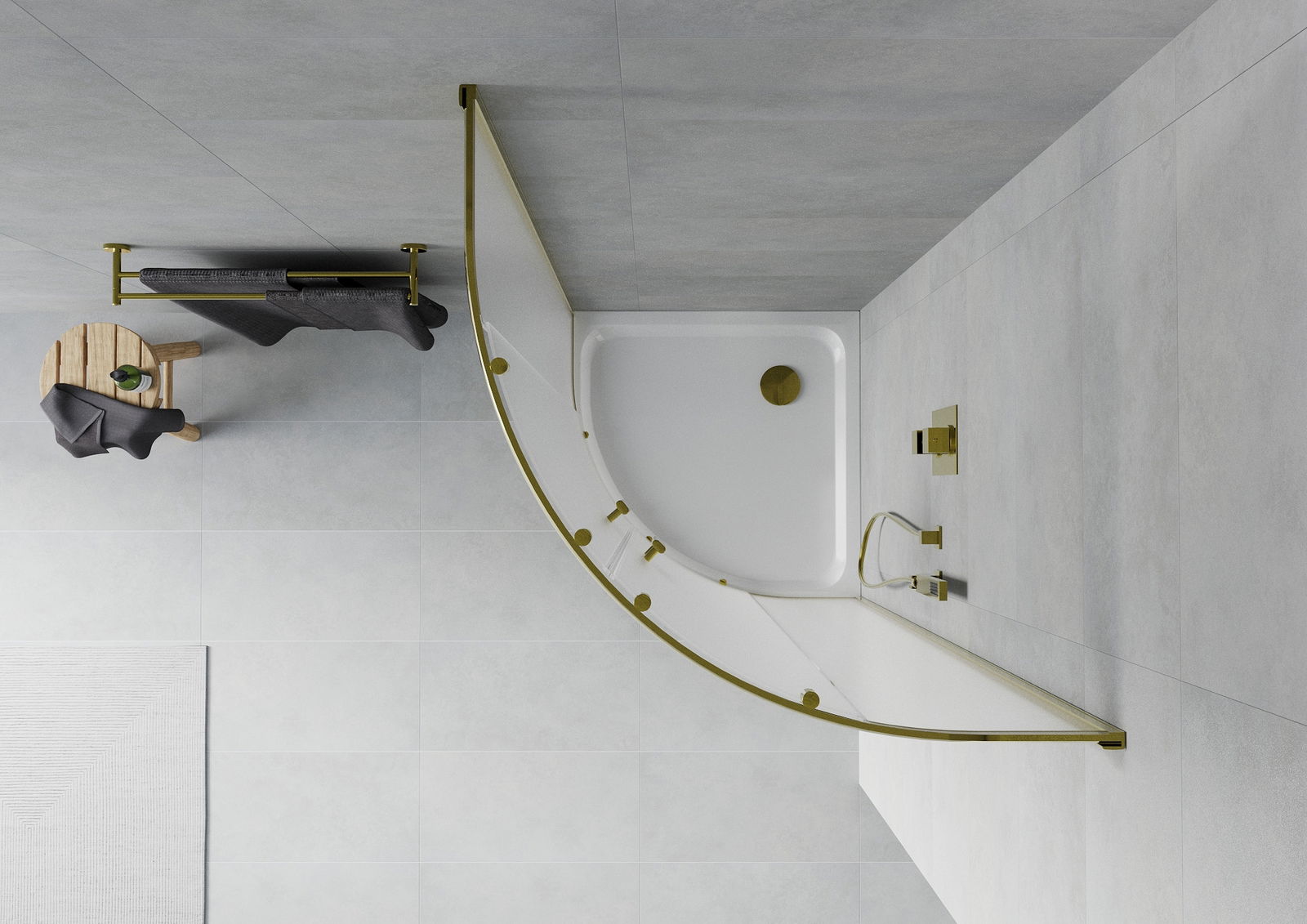 Mexen Rio pusapvalė dušo kabina 80 x 80 cm, matinė, auksinė + Flat padėklas, baltas - 863-080-080-50-30-4110G