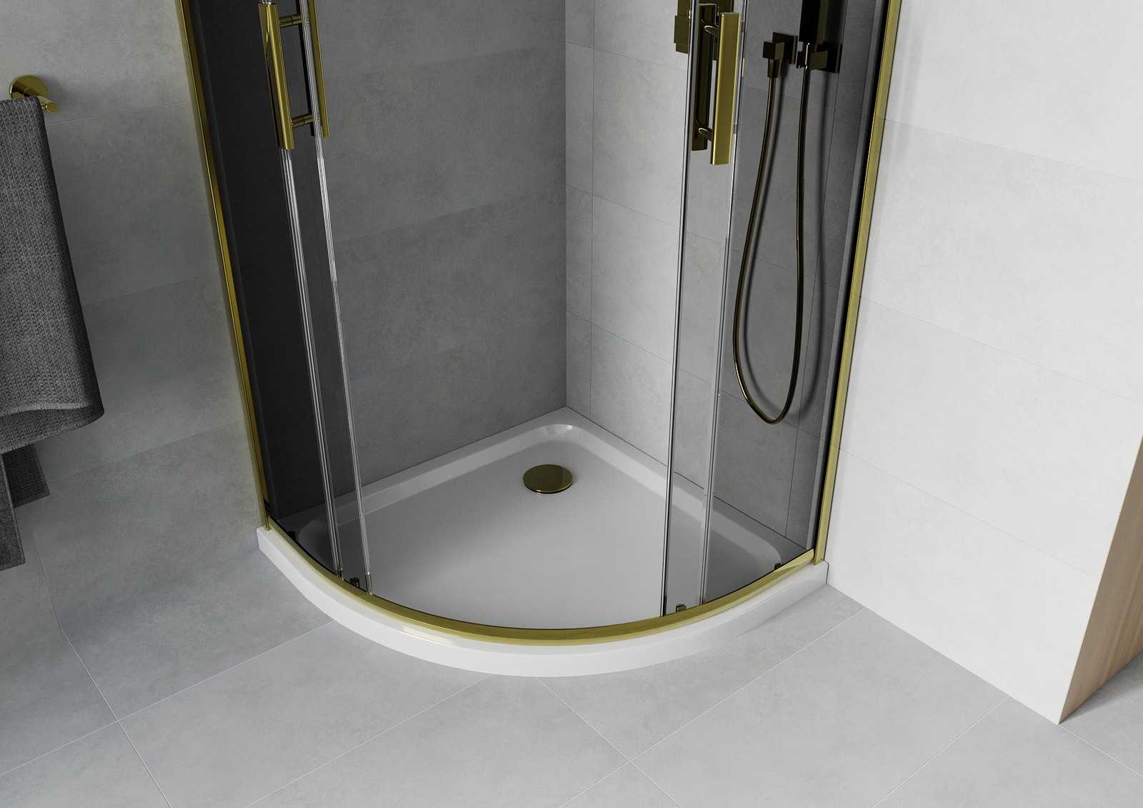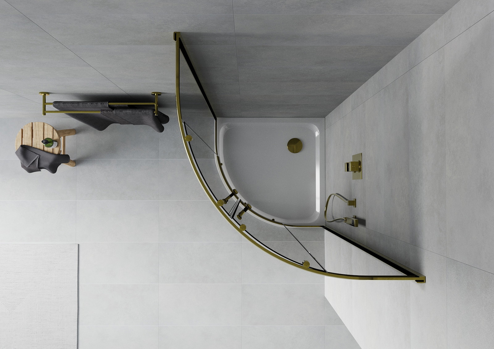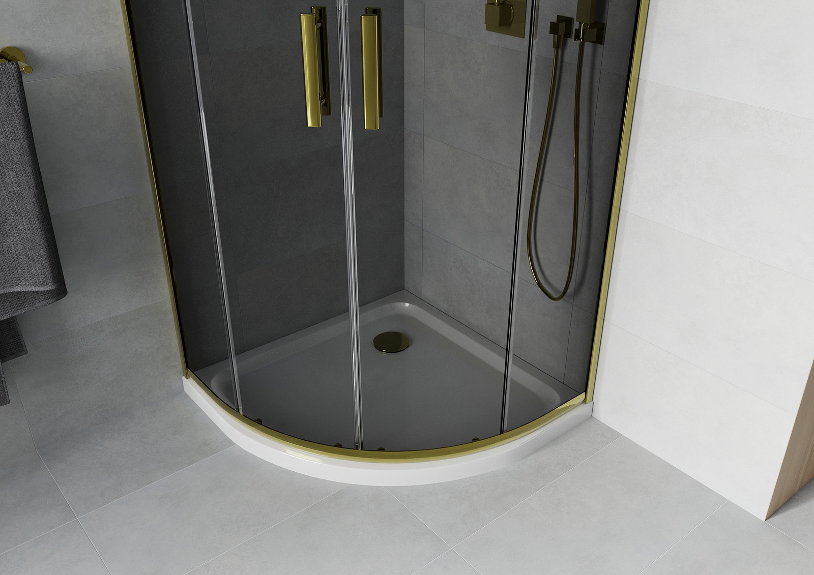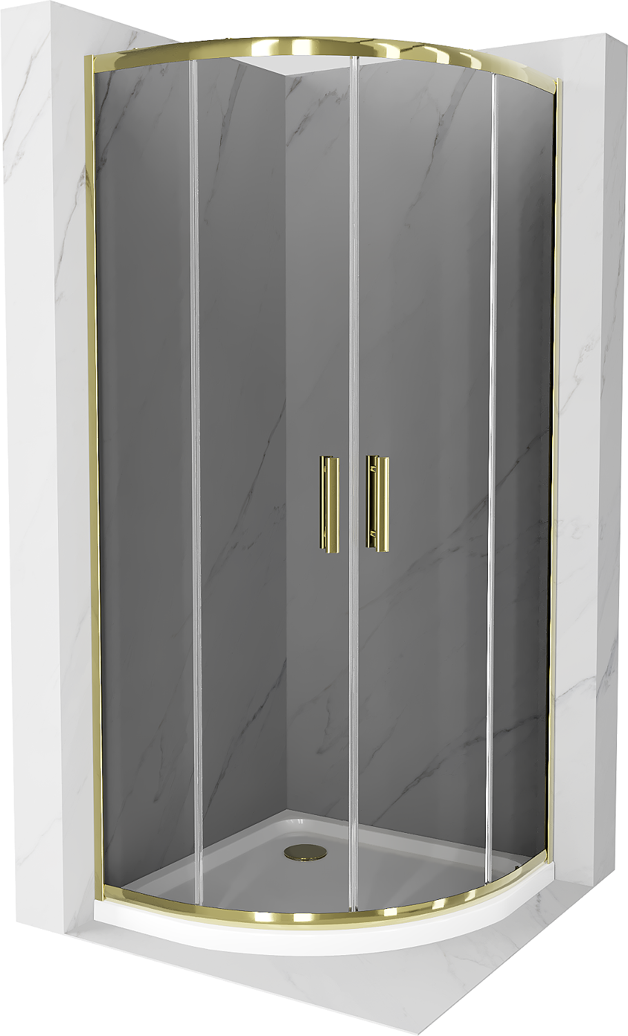 Mexen Rio apvalus dušo kabina 80 x 80 cm, grafitas, auksas + Flat padėklas, baltas - 863-080-080-50-40-4110G