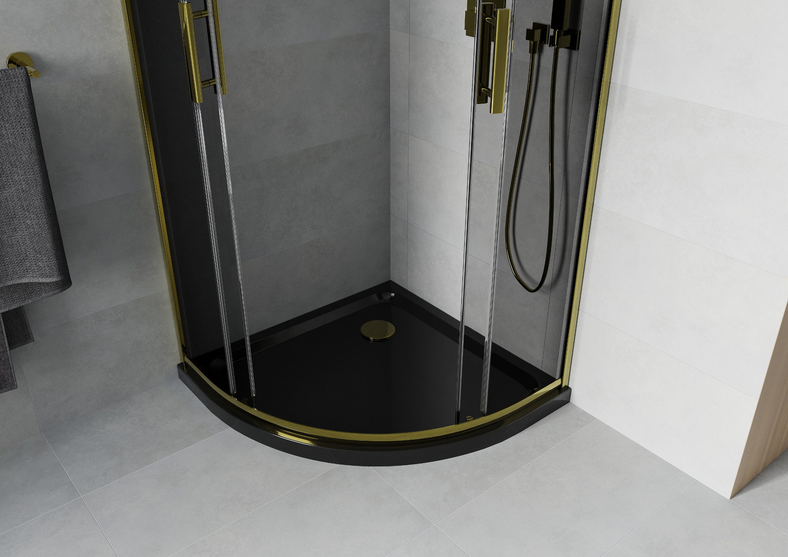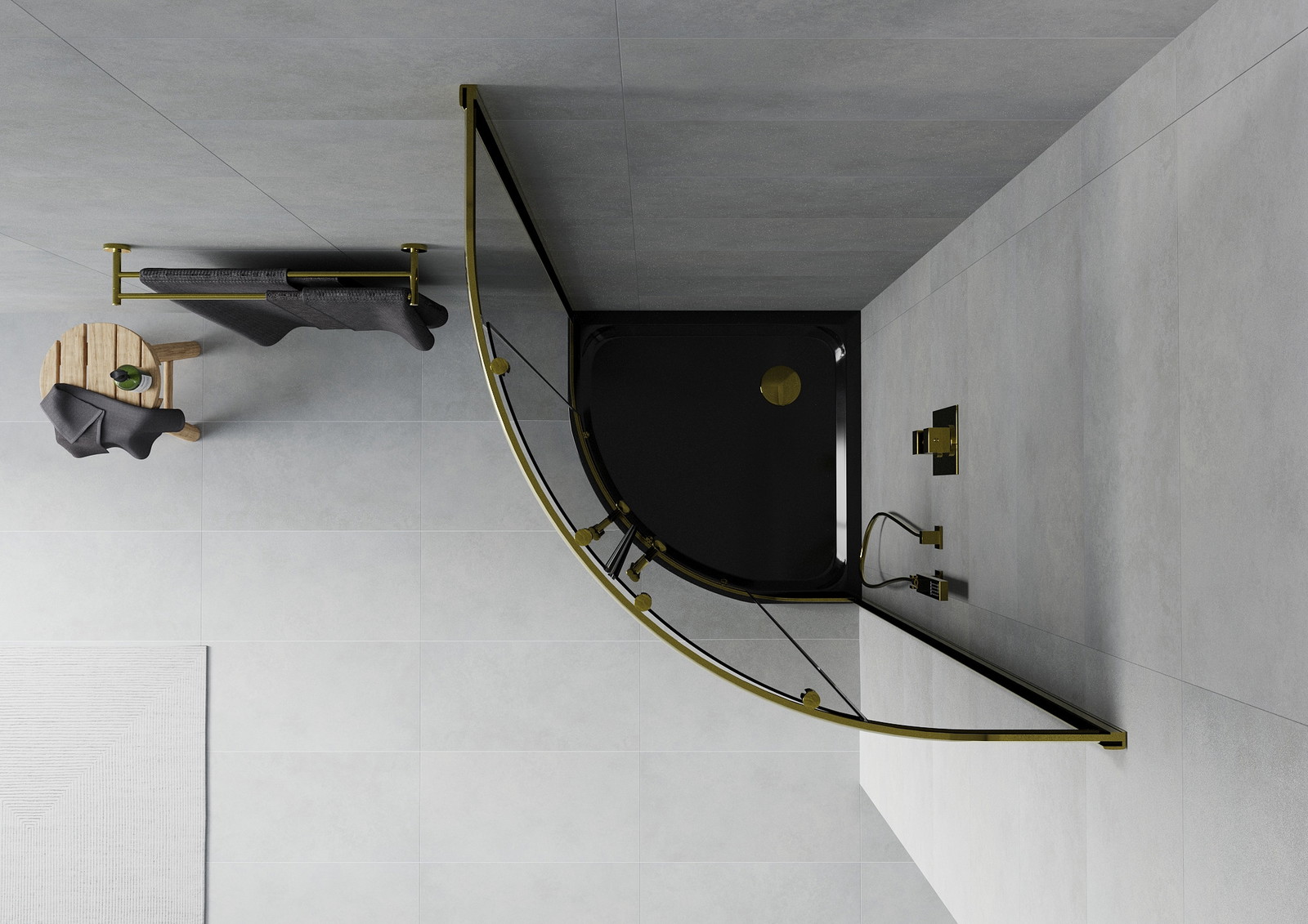 Mexen Rio pusapvalė dušo kabina 80 x 80 cm, grafitas, auksinė + Flat dušo padėklas, juodas - 863-080-080-50-40-4170G