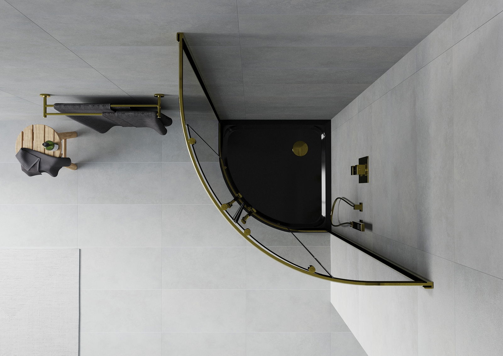 Mexen Rio pusapvalė dušo kabina 90 x 90 cm, grafitas, auksinė + Flat padėklas, juodas - 863-090-090-50-40-4170G