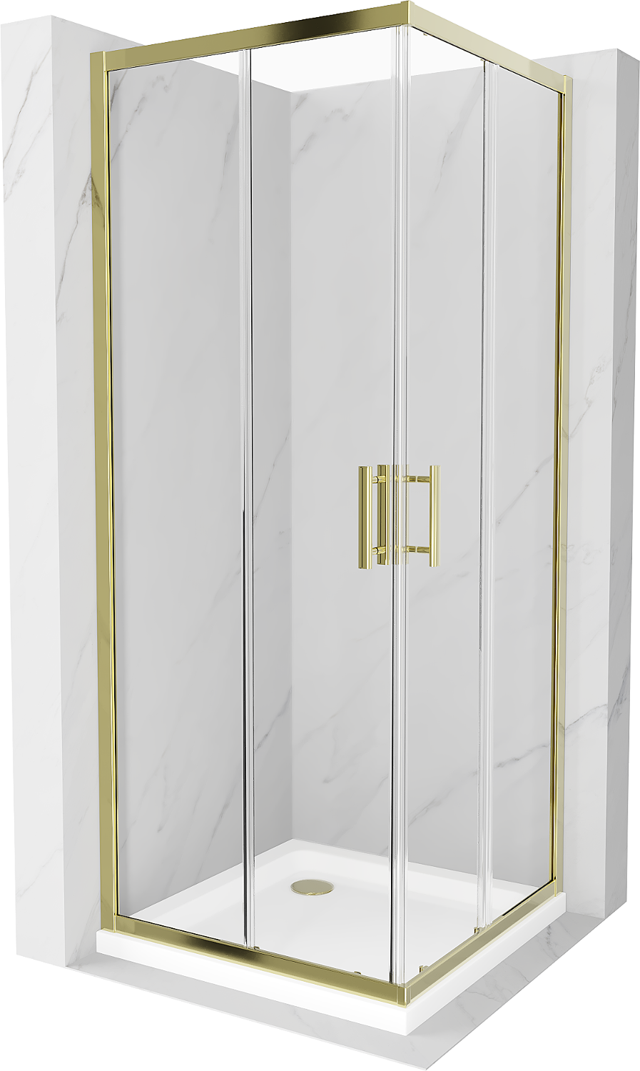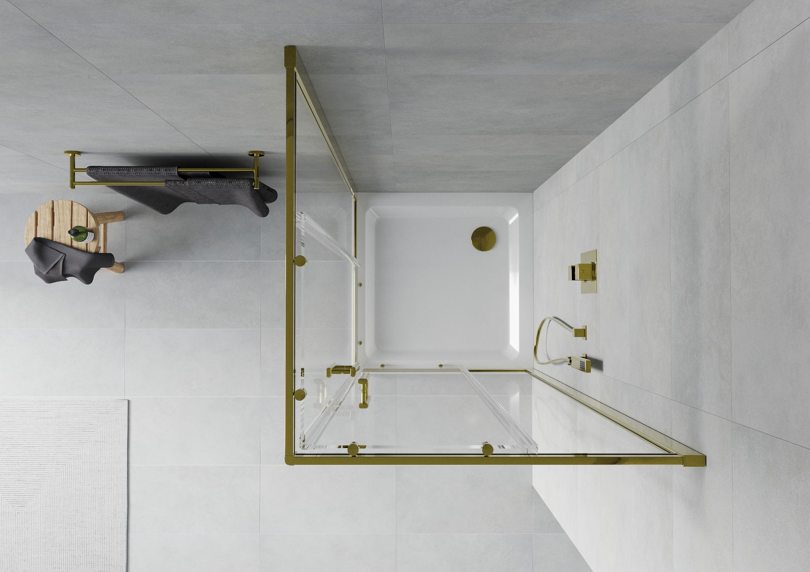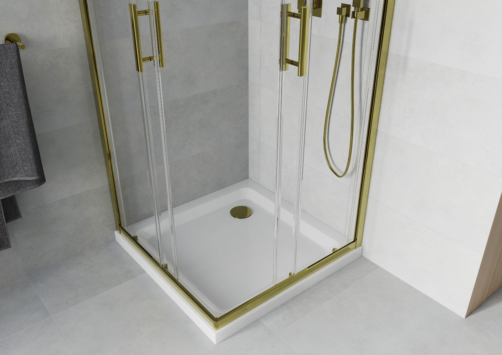 Mexen Rio kvadratinė dušo kabina 80 x 80 cm, skaidri, auksinė + plokščias dušo padėklas, baltas - 860-080-080-50-00-4010G