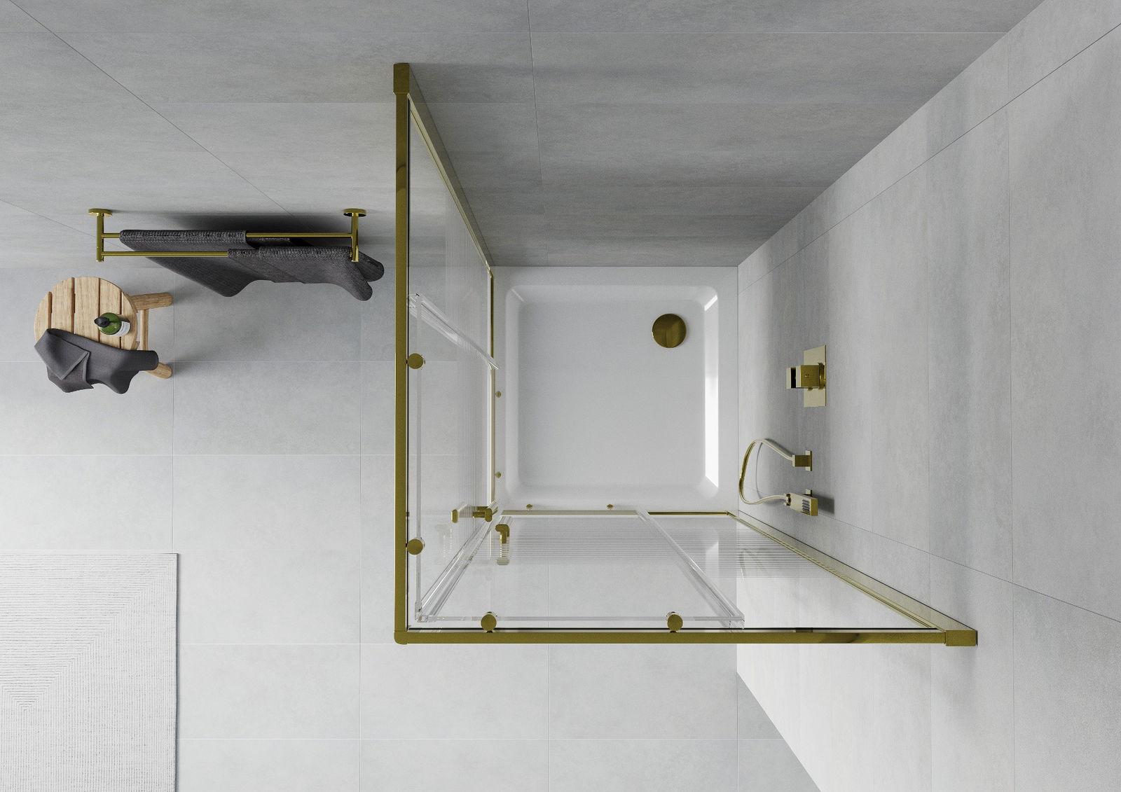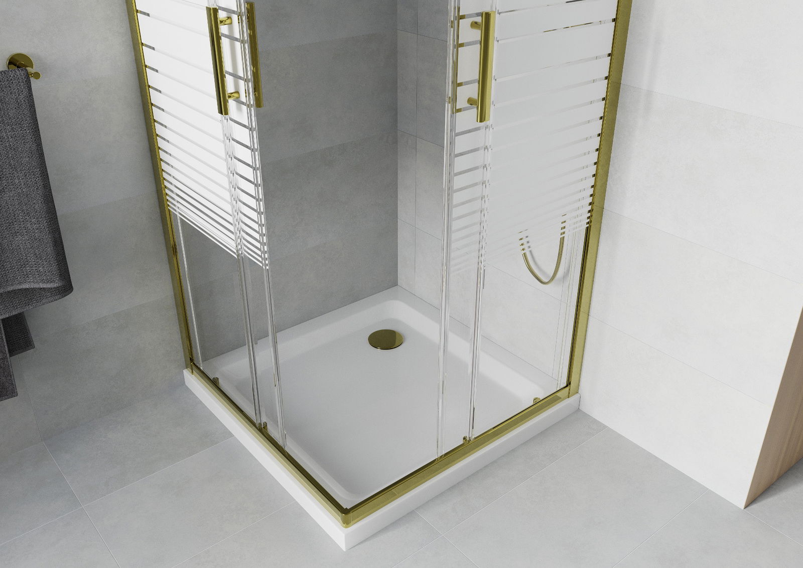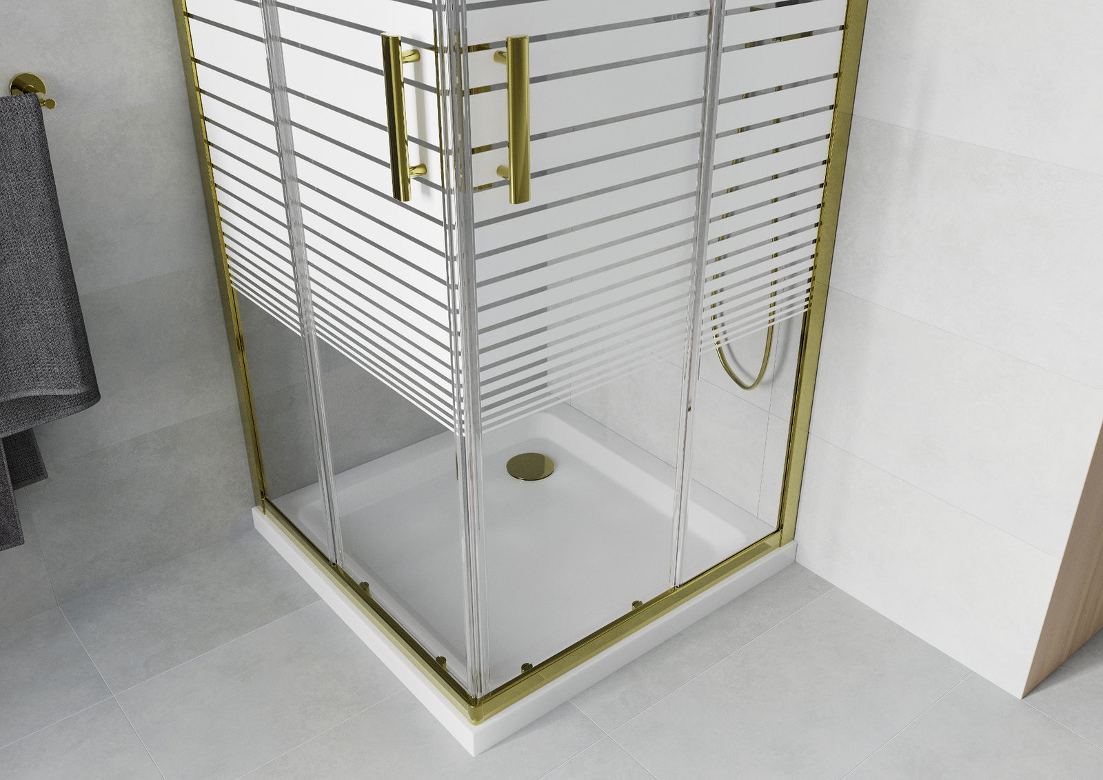 Mexen Rio kvadratinė dušo kabina 70 x 70 cm, baltos juostos, auksinė + plokščias padėklas, baltas - 860-070-070-50-20-4010G