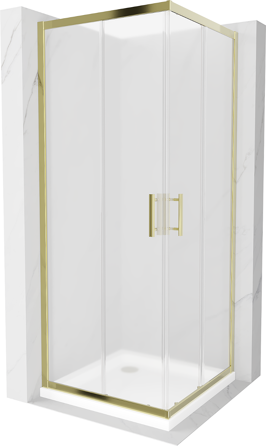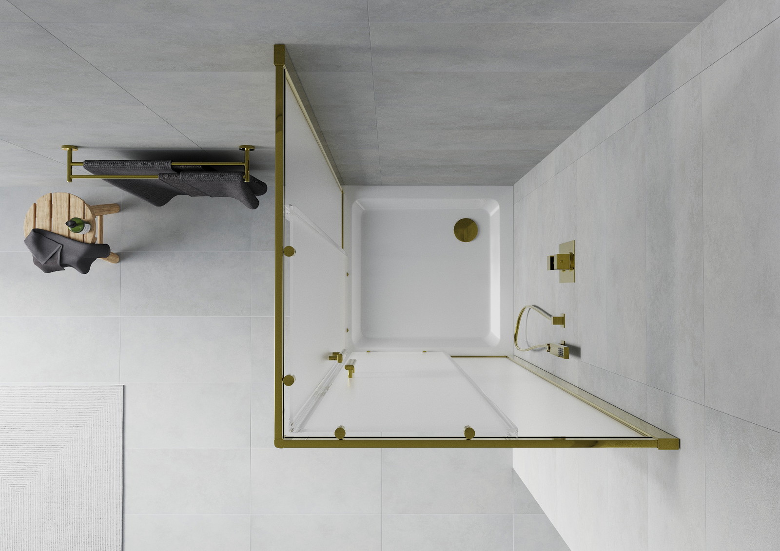 Mexen Rio kvadratinis dušo kabina 80 x 80 cm, matinė, auksinė + Flat padėklas, baltas - 860-080-080-50-30-4010G