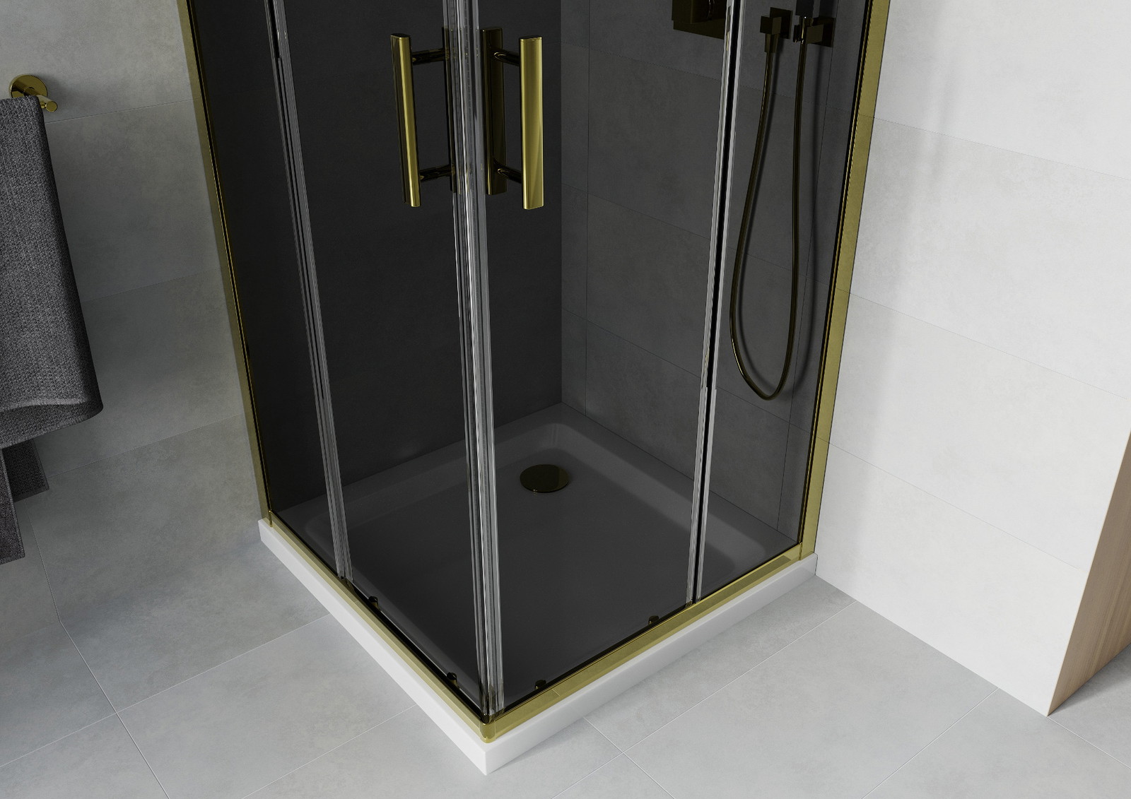 Mexen Rio Kvadratinis dušo kabina 90 x 90 cm, grafito spalvos, aukso spalvos + plokščias padėklas, baltas