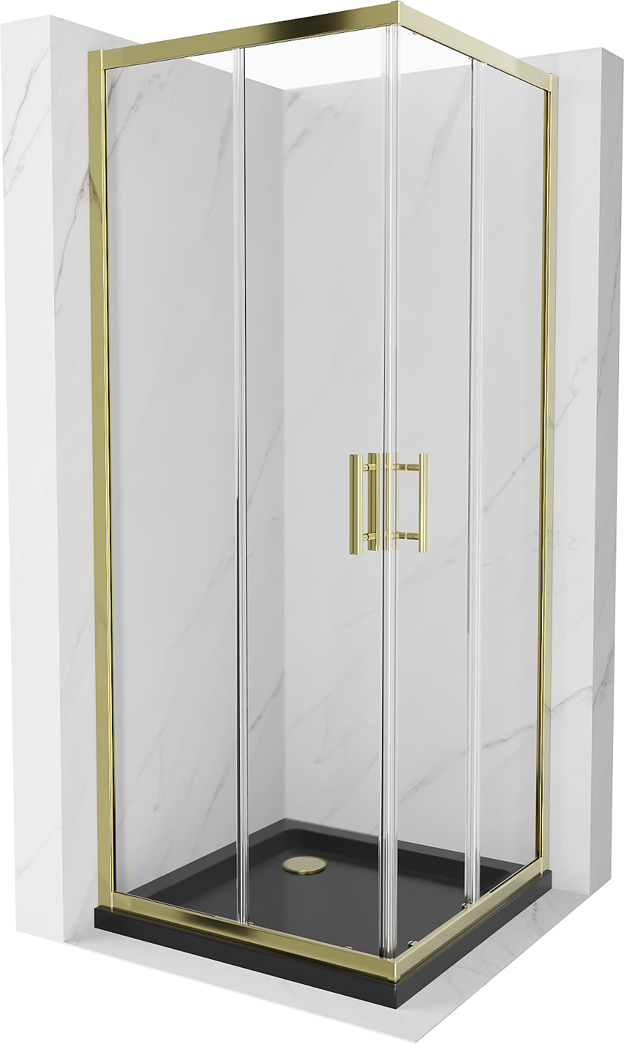 Mexen Rio kvadratinė dušo kabina 80 x 80 cm, skaidri, aukso spalvos + plokščias padėklas, juodas- 860-080-080-50-00-4070G